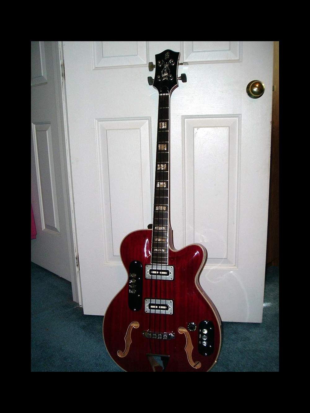 The vintage guitar 1965 Zerosette JG Rangemaster Bass was found in a closet after many years. It was cleaned by Davis Millard (maker of "Davis Bluesville Guitars" and give to Pete Wallace in Charlotte, North Carolina, USA. It has a wonderful deep tone with a perfect neck that plays very smooth.