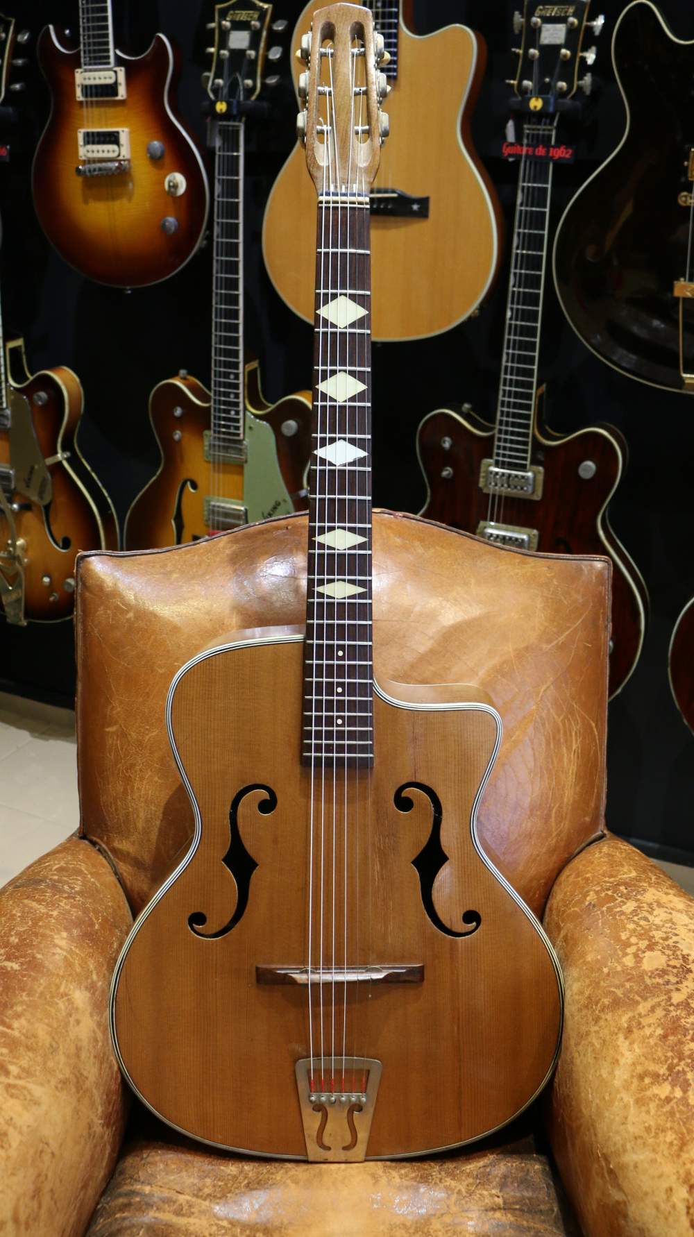 A gypsy jazz style guitar with great playing facility and lot of projection. A real gem of nearly 80 years old filled with history to have in your collection and which represents the excellency of French lutherie.