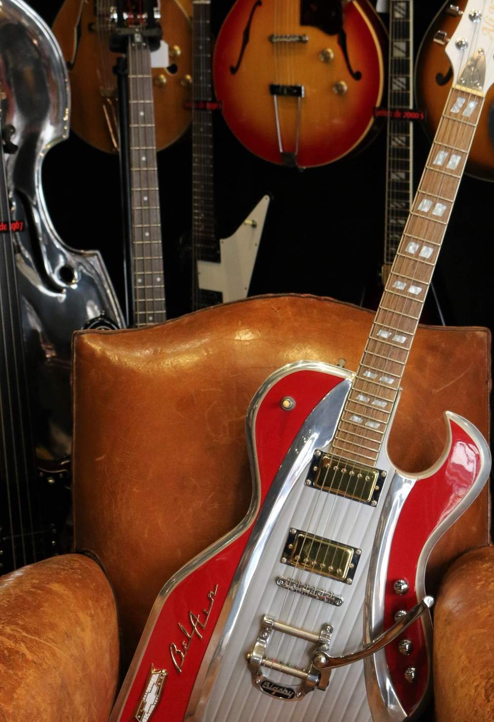 Cette guitare, une pièce unique, a été fabriquée en 1 exemplaire, en hommage à la mythique Chevrolet Bel Air 57.