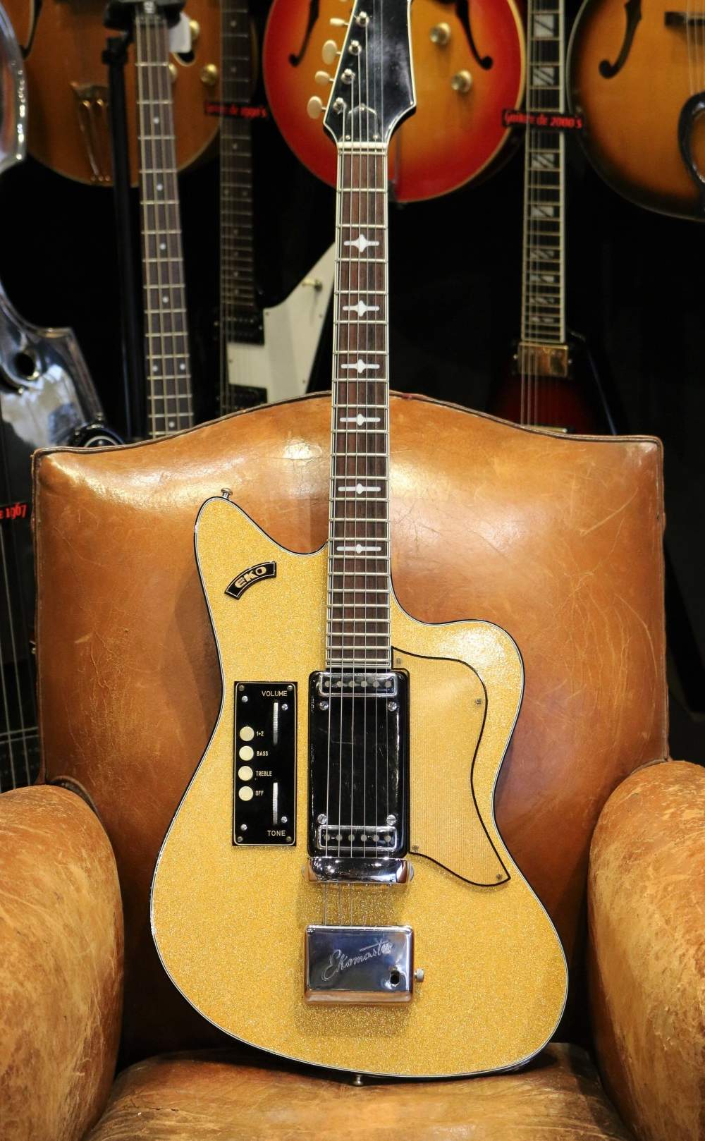 Guitare Collection vous propose cette incroyable Eko Ekomaster 400 V2 de 1960's (1960-62) en finition Gold Sparkle (paillettes dorées).