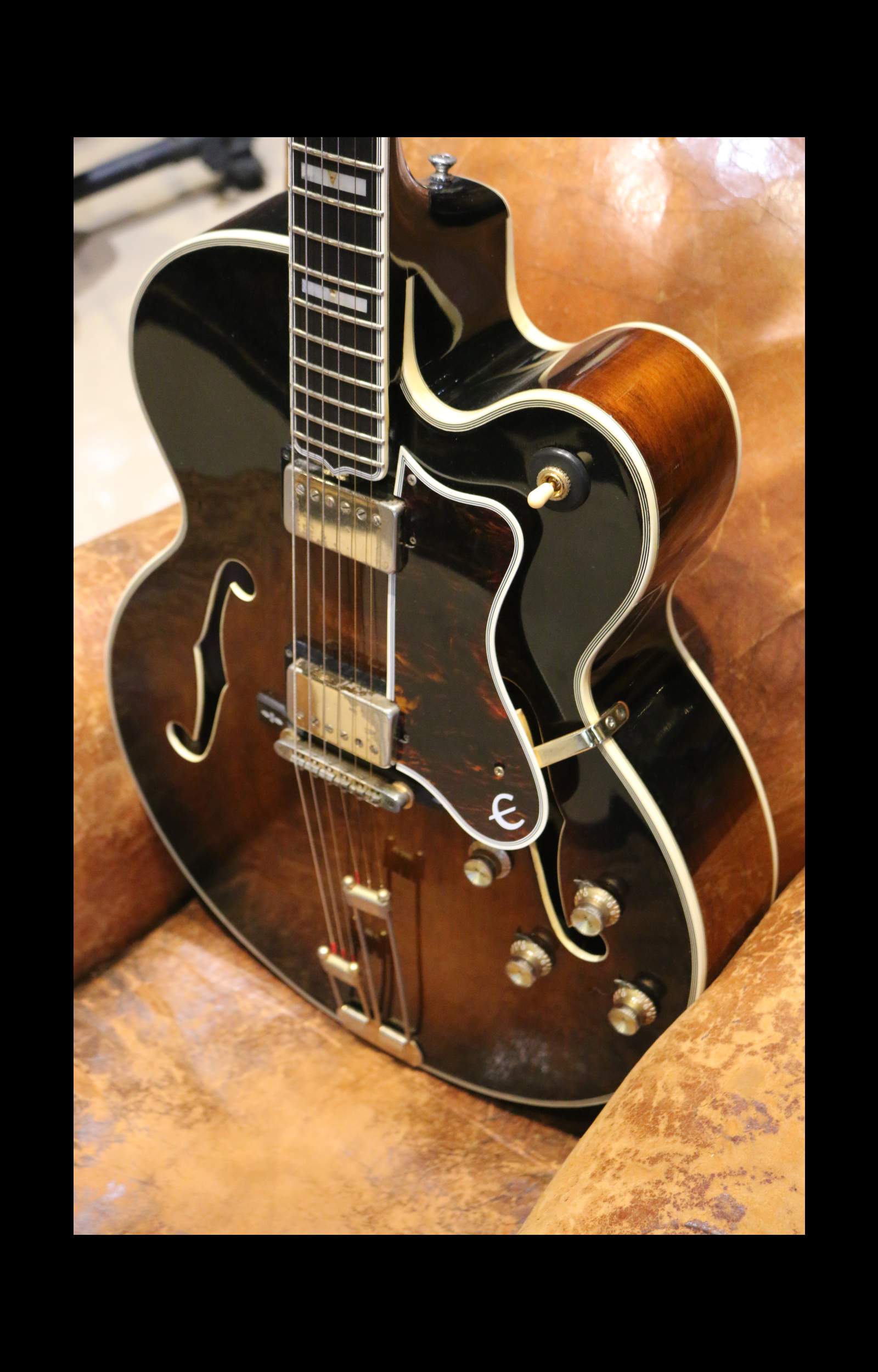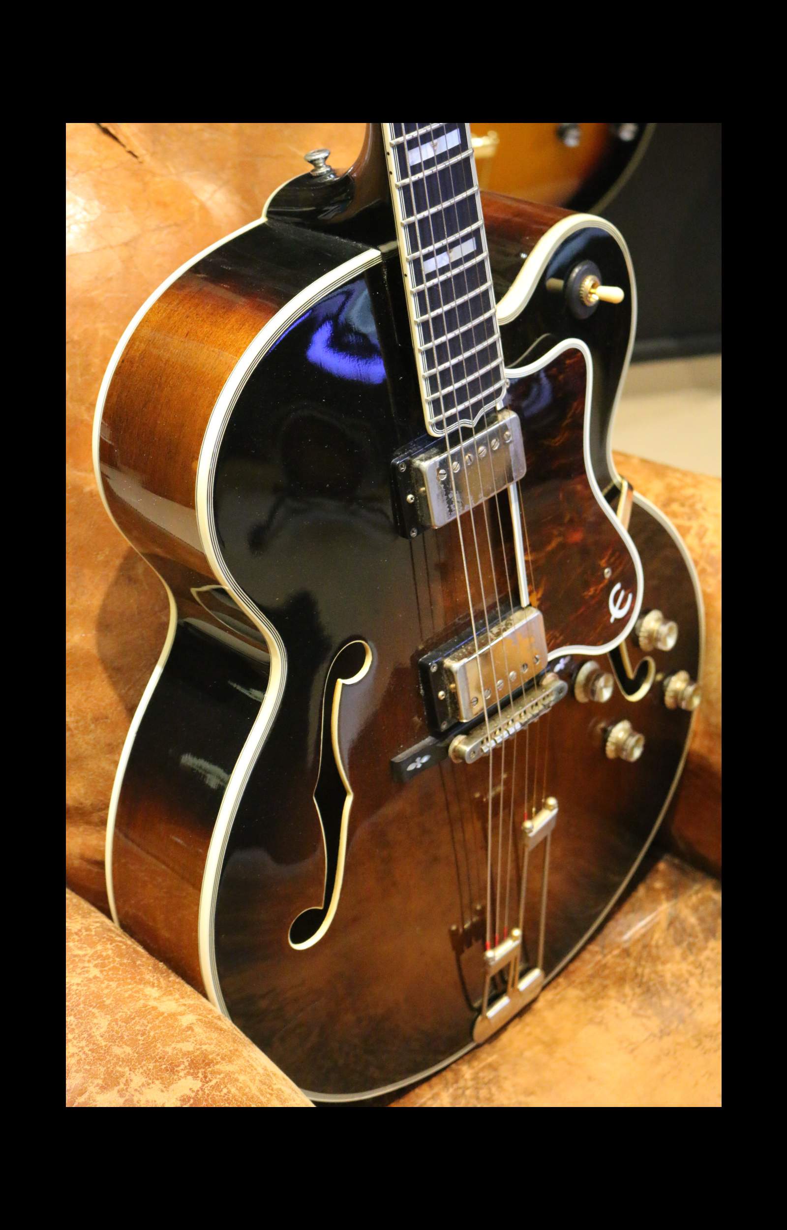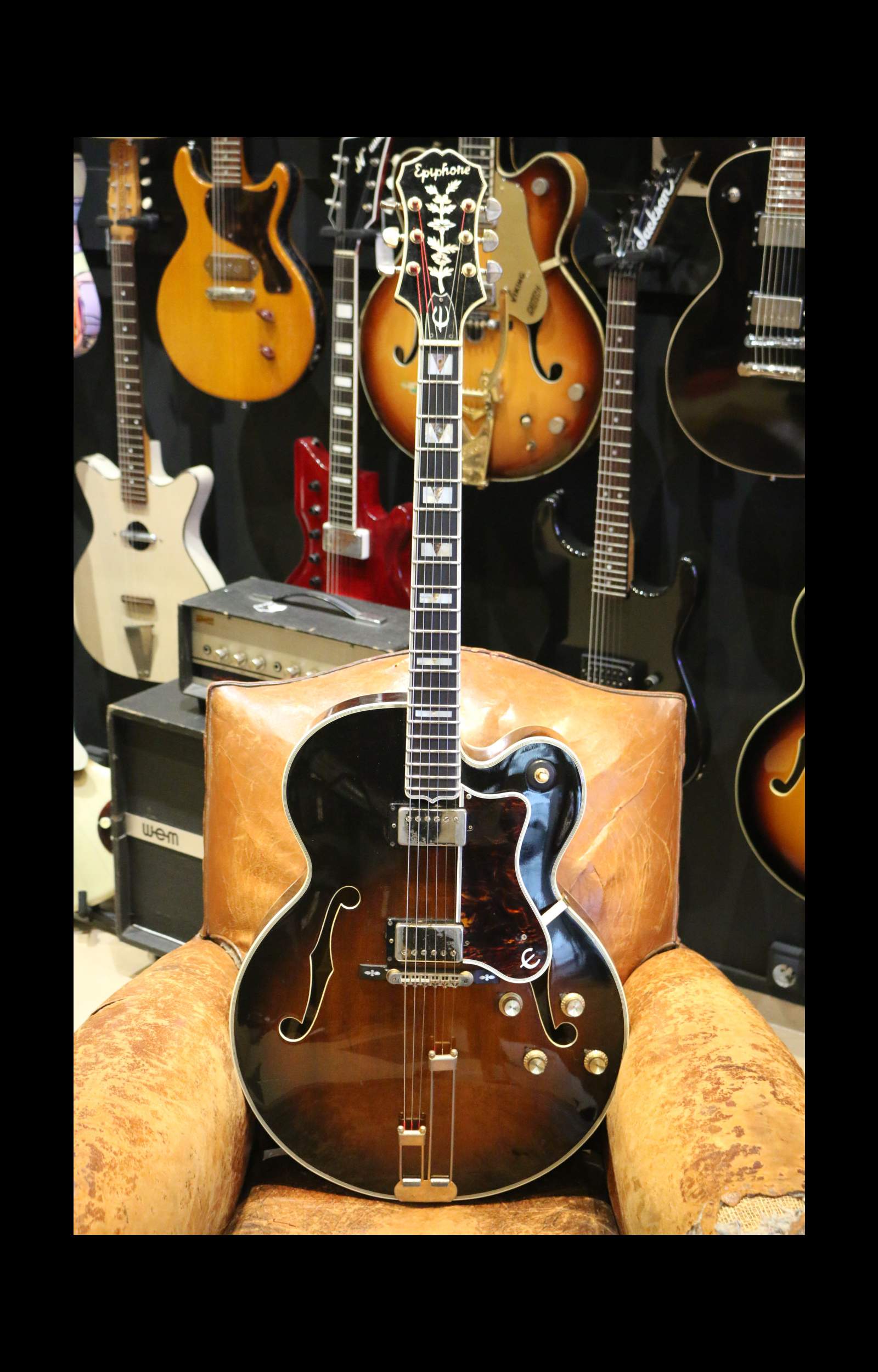Introduite dans les années 1930 comme modèle haut de gamme de la marque, l’Emperor a été conçue pour rivaliser avec les grandes guitares jazz de l’époque, notamment celles de Gibson !