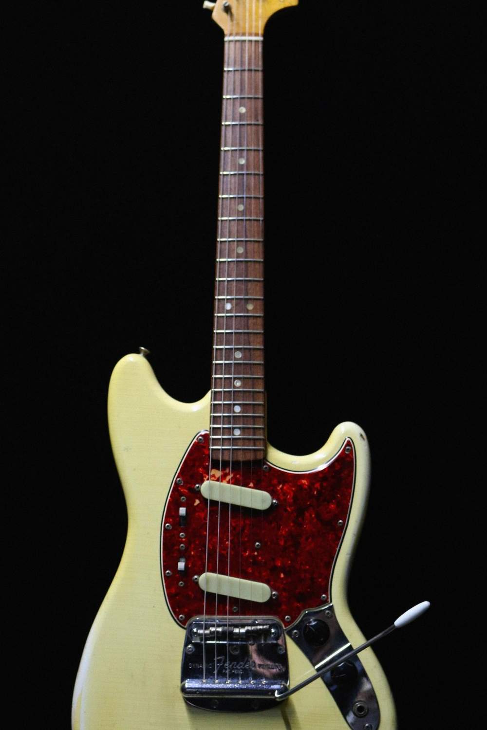 Guitare Collection vous propose cette somptueuse et rare Fender Mustang en finition Custom Color Olympic White de 1965, 100% originale, livrée avec son hardcase original.