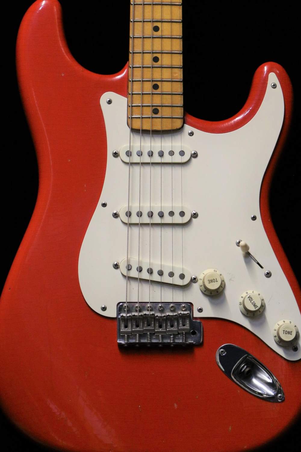 Corps est en aulne, les micros blancs. Un look devenu culte, une Fiesta Red Strat qui en plus de ça, sonne particulièrement bien.