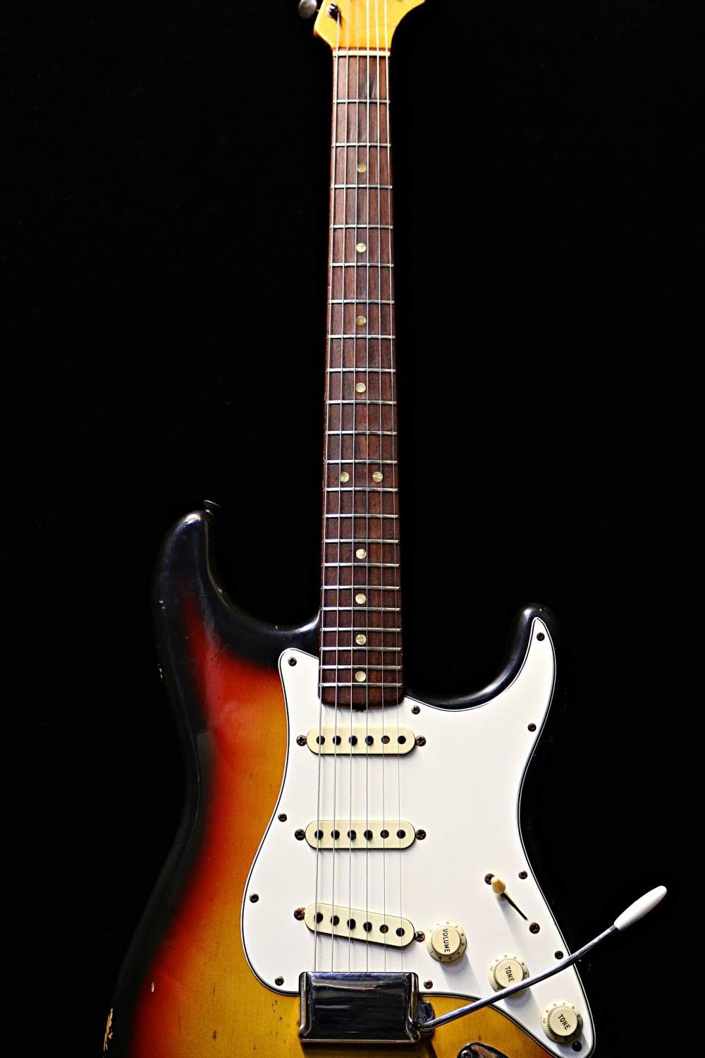 Guitare Collection vous propose cette superbe Fender Stratocaster Sunburst de 1965. Fin 1965 pour être précis puisqu'il s'agît d'une des premières Stratocaster portant un numéro de série commençant par 100 XXX.