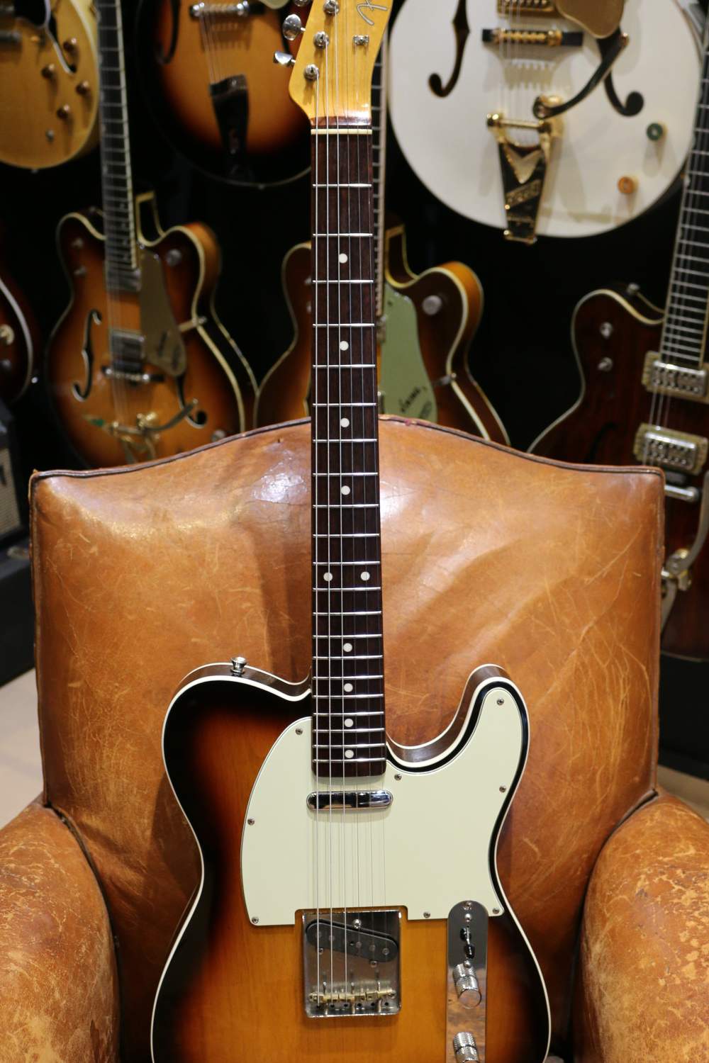 Voici une superbe Telecaster, réédition d’une 62’ destinée au marché japonais. On retrouve un corps en aulne en finition sunburst avec un double binding et un pickguard mint. Le manche est en érable « Slim C » avec une belle touche en palissandre bien sombre.