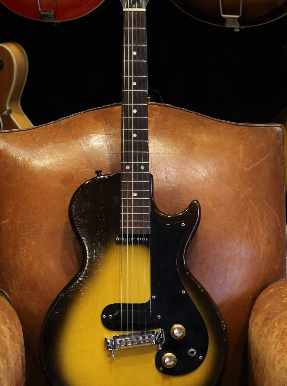 Guitare Collection vous propose cette somptueuse Gibson Melody Maker Sunburst de 1960, deuxième année de production du modèle.
