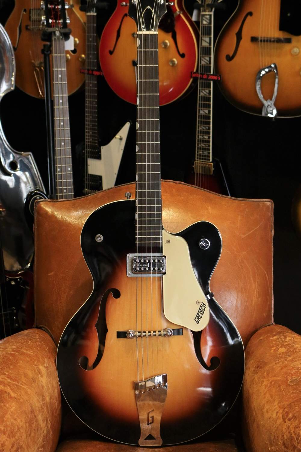 Cette Gretsch est très facile à jouer suite aux réglages de notre luthier résident. Elle propose de superbes sonorités d'une grande profondeur avec un grain très prononcé (Voir Vidéo).