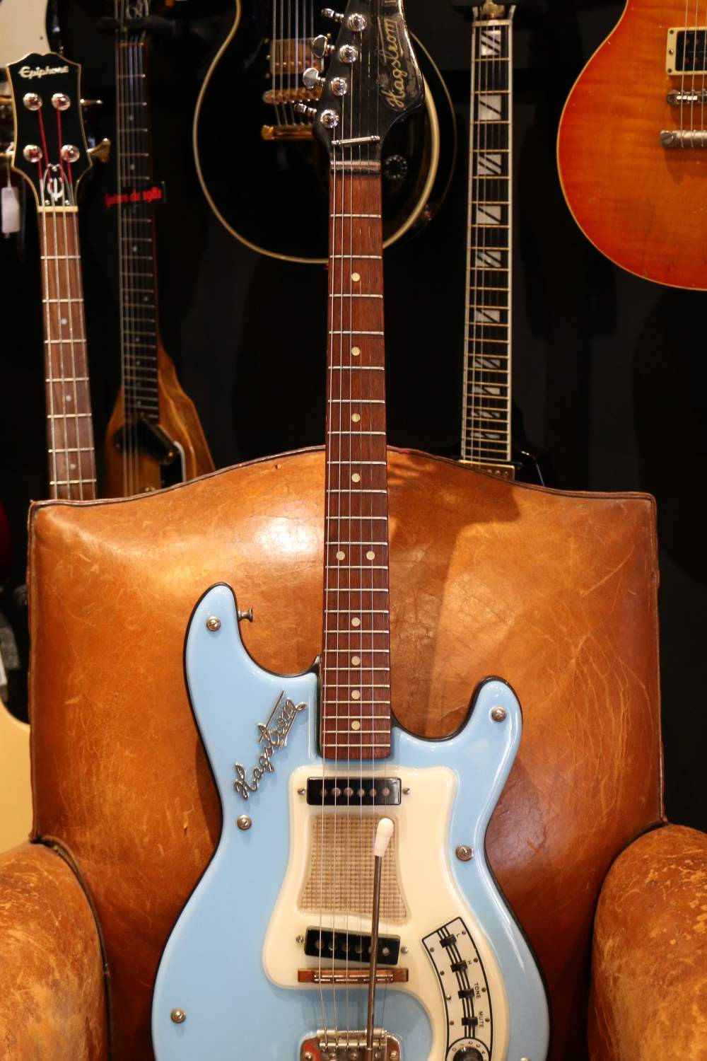 Destinées à concurrencer sur le marché européen les géants Fender et Gibson, les Hagstrom ont su bâtir une réputation solide au fil des années. Des musiciens de renom les ont adopté, notamment Elvis Presley par exemple. Avec un son assez typique de la marque et une belle teinte Daphné Blue toute droit sortie des 60's, c'est un bond dans le passé garanti.