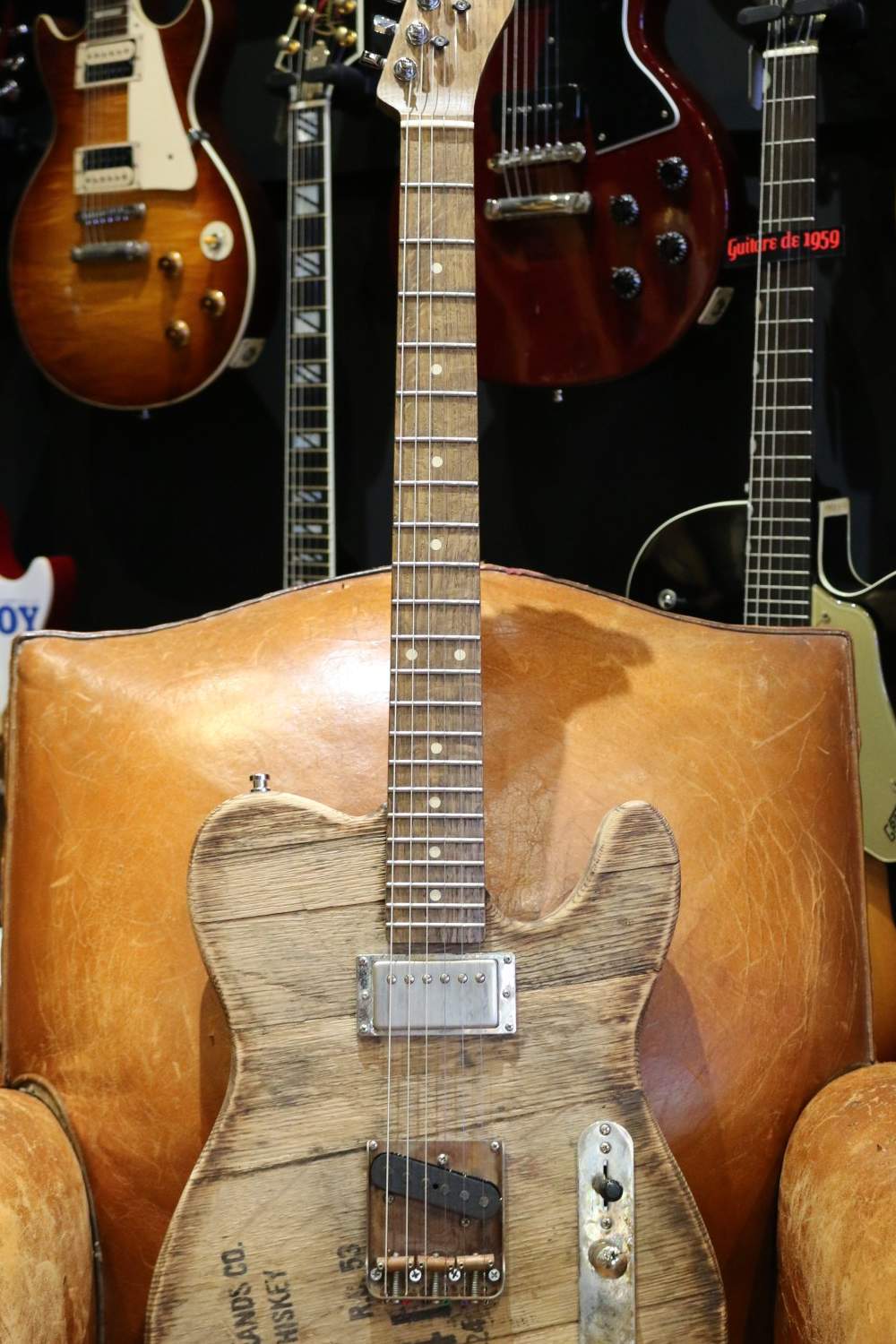 Le bois utilisé pour fabriquer cette guitare au son extraordinaire (voir vidéo) provient d'un ancien baril en chêne servant au vieillissement du whiskey Jim Bean.