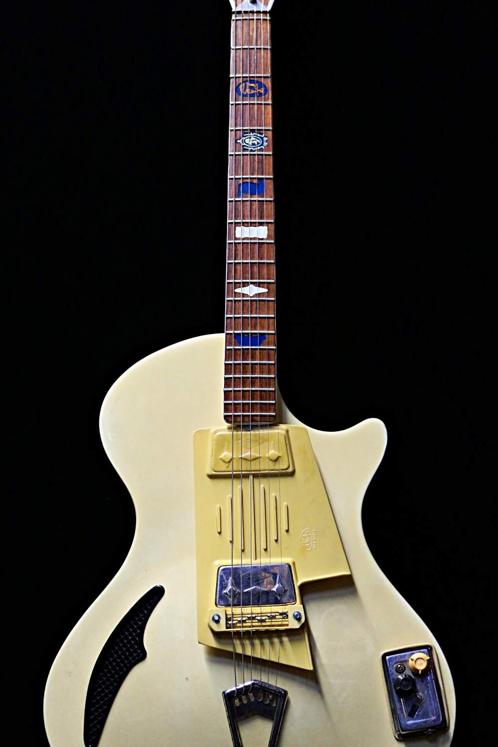 Guitare Collection vous propose cette belle Wandre Tri Lam White des années 60. Montée avec un micro Davoli en position chevalet.