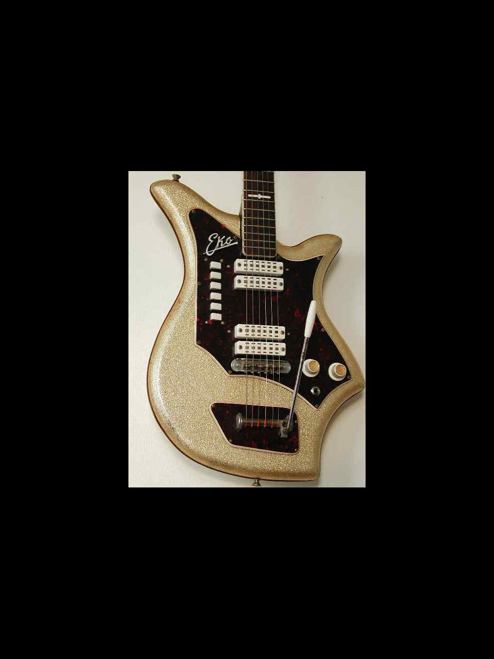 La société Eko a été fondée en 1959 par Olivero Pagini . Pendant les années 1965 à 1970, Eko était le plus important fabriquant d' instruments de musique en Europe. Eko a été un des plus gros exportateur des guitares aux Etats-Unis. Eko a également produit des pièces de guitares pour Vox. Les usines Eko sont en italie. Les modèles sparkles des années 1960 - 1966 sont particulièrement recherchés pour la beauté de leurs lignes et le revetement sparkle qui a très bien supporté les années. Ce modèle 700 V 4 comporte de multiple possibilités de son avec les combinaisons des 4 micros.