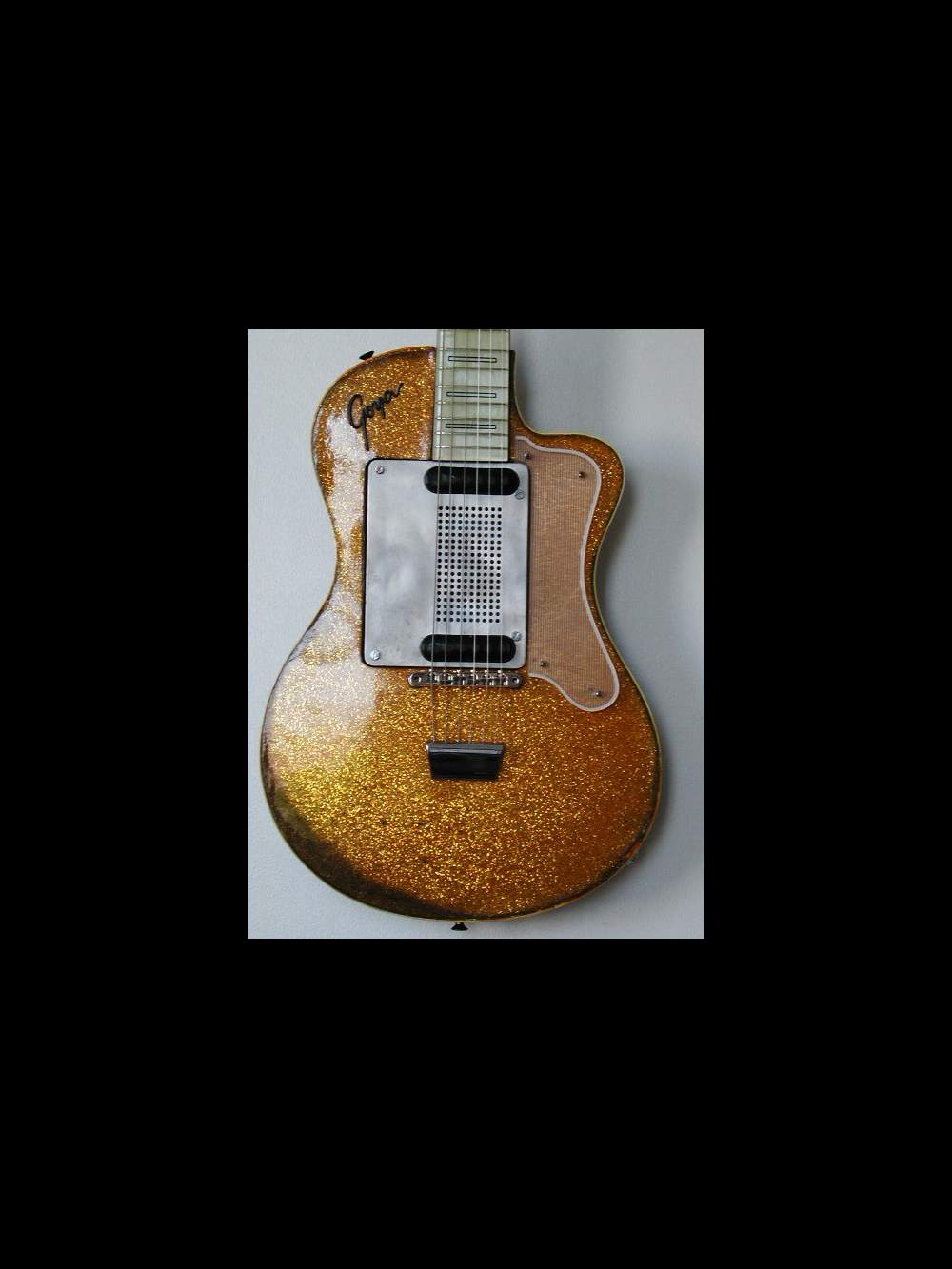 Ma guitare électrique "hollowbody" Goya a été faite par Hagstrom Guitar Company Suède en 1960. C'est une model 80 standard qui a été fabriquée a 370 exemplaires. Ces guitares de Goya ont été faites pour Hershman Musical Instrument Company de New York (le distrubuteur des guitares acoustiques de marque de Goya). Ces guitares sont parmi les plus rare guitares fabriquées par Hagstrom de Suède. Ma Goya a été modifiée. Les 2 micros sont reliés entre eux et le reglage de volume se fait directement sur l'ampli. Les boutons poussoirs pour passer de acoustique a électrique ont été supprimés. Elle sonne toujours super, et le manche est un vrai bonheur. Pour plus d'information sur les guitares Goya voir le site: http://goyaguitars.tripod.com/