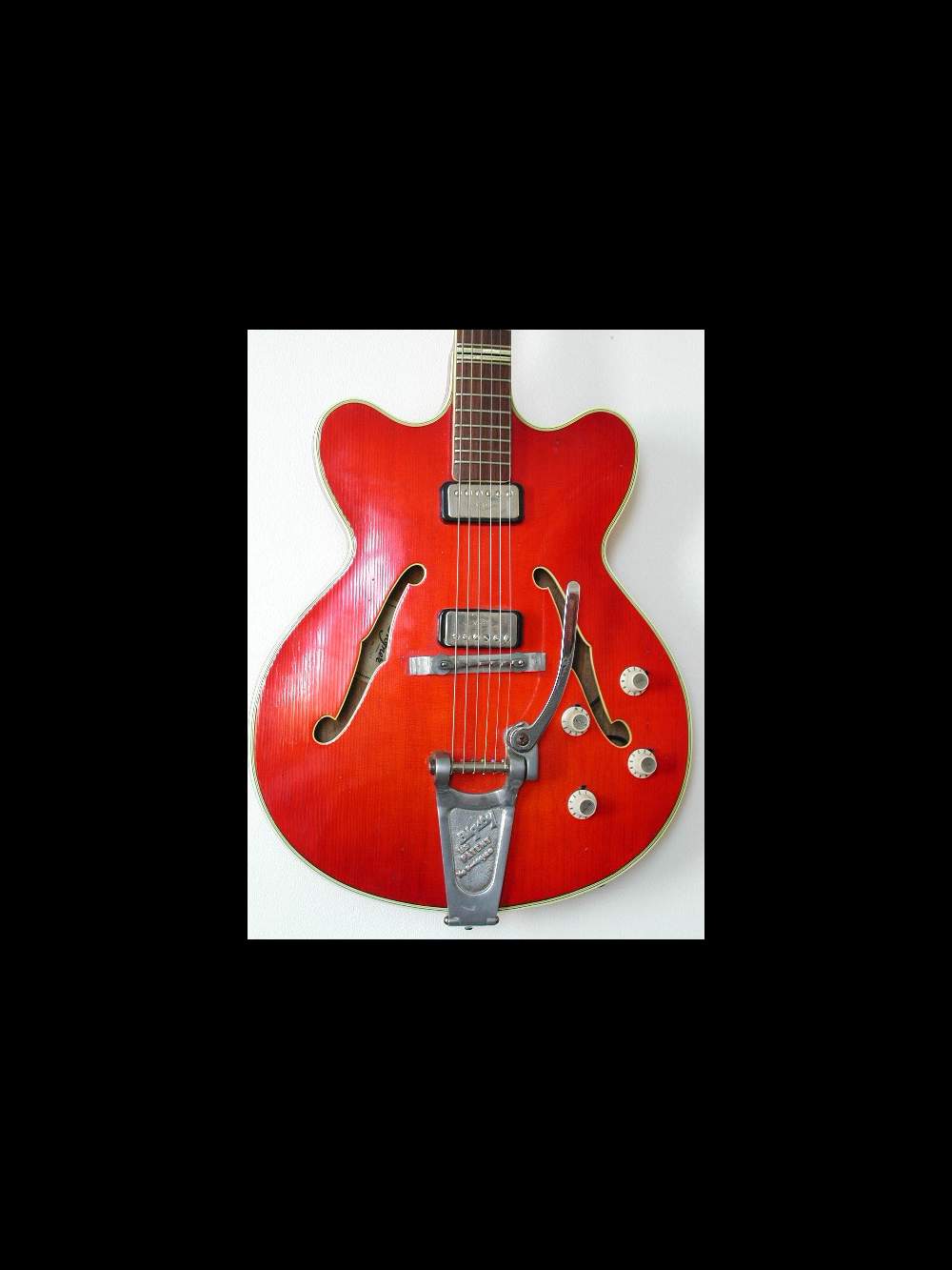 Superbe guitare Hofner modele Verythin de 1963. Guitare semi hollow body corps 1/4 pouce. La Verythin dont la conception remonte aux années 1960 à un corps mince et est une guitare très recherchée par les collectionneurs. Les micros sont des humbucking. Ce modele est équipé d'un Bigsby ce qui n'est pas fréquent sur cette guitare. Elle sonne super bien.