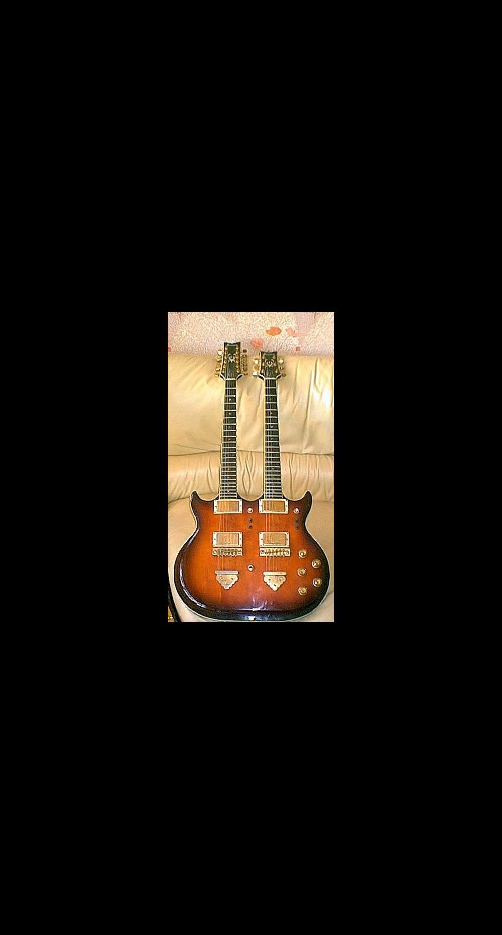 Voyez cette IBANEZ double manche, modèle japonais très rare et fabriqué à très peu d'exemplaire. Les deux manches sont très agréables à jouer malgré un poids assez consequent. Mais la brillance du manche 12 cordes est fabuleux et en fermant les yeux on pourait presque se tromper avec la GIBSON même sonorité même harmonie même grain. L'acces aux deux manches se fait sans aucun probleme les combinaisons micros sont fabuleuses tous splitables. Un régal pour STAIRWAY ,HUM!!!!!!!!!!!! Voila , la datation de cette guitare nous donne JANVIER 1979. Pour le son ça viendra un peu plus tard.