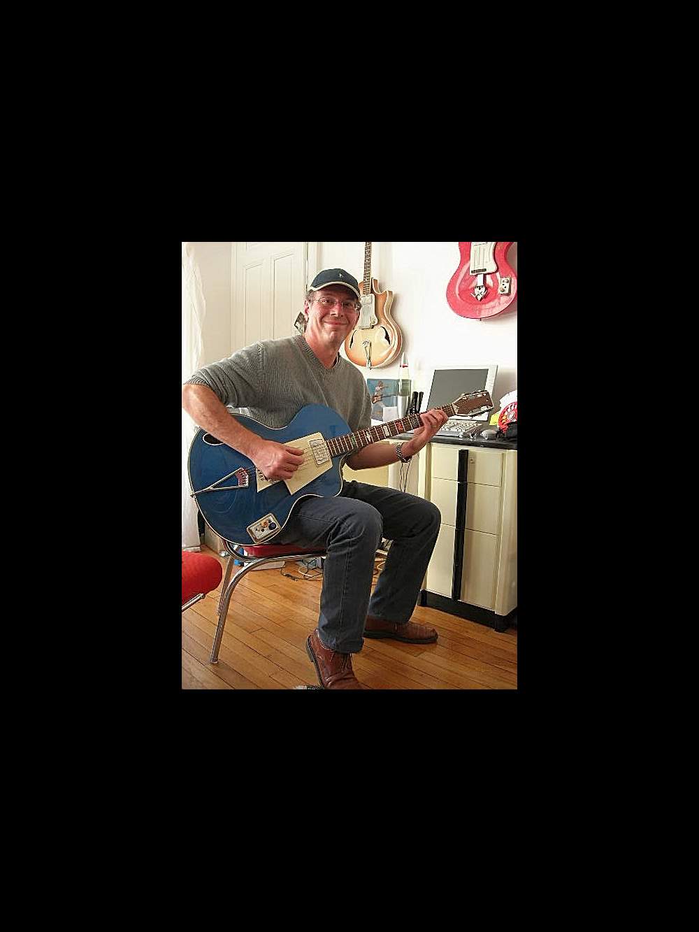 Notre ami Belge Dany Delepierre, super sympa, excellent joeur de guitare et artiste peintre nous presente une tres rare Wandré Davoli BB Export. Wandré Pioli, créateur de ces guitares dans les années 1960, a été fortement inspiré par l'époque yéyé, les filles sur la plage en bikini et la superbe Brigitte Bardot qui a probablement inspiré les courbes de ce modèle. C'est certainement en honneur a sa beauté que Wandré a batisé cette guitare BB. La BB fait parti des toutes premières créations de Wandré. La forme de BB est une interprétation réussie de recherche d'avant-garde. Wandré a produit des guitares de 1957 à 1969. La production, toujours avant gardiste était composée de solidbody, hollowbody guitares et basses. Wandré a produit sous les marques Wandré, Davoli, Framez, Noble, Dallas, Avalon, Avanti et autres. La production a été réalisée essentiellement à Milan en Italie. Guitares aux lignes superbes, le son était aussi très présent avec les micros Davoli et Framez.