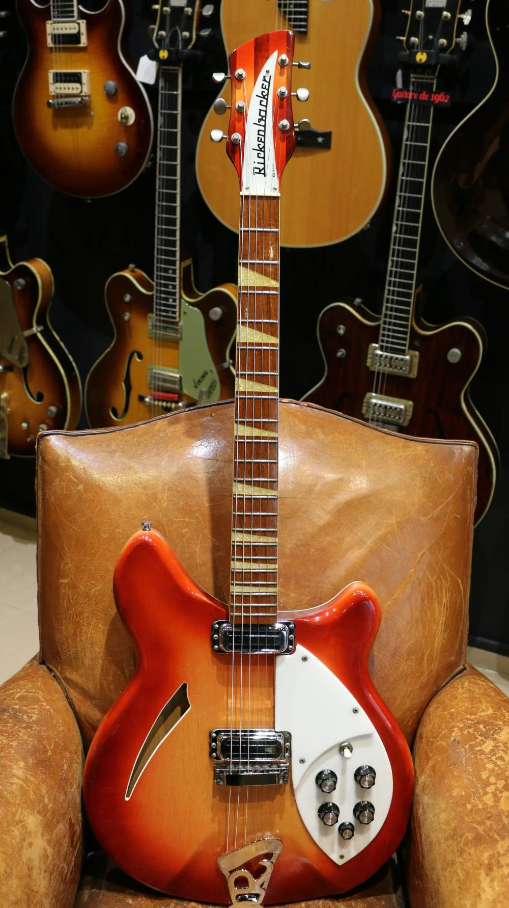 Guitare Collection vous présente cette sublime Rickenbacker 360 (Anciennement 365) en finition Fireglo de 1967 :