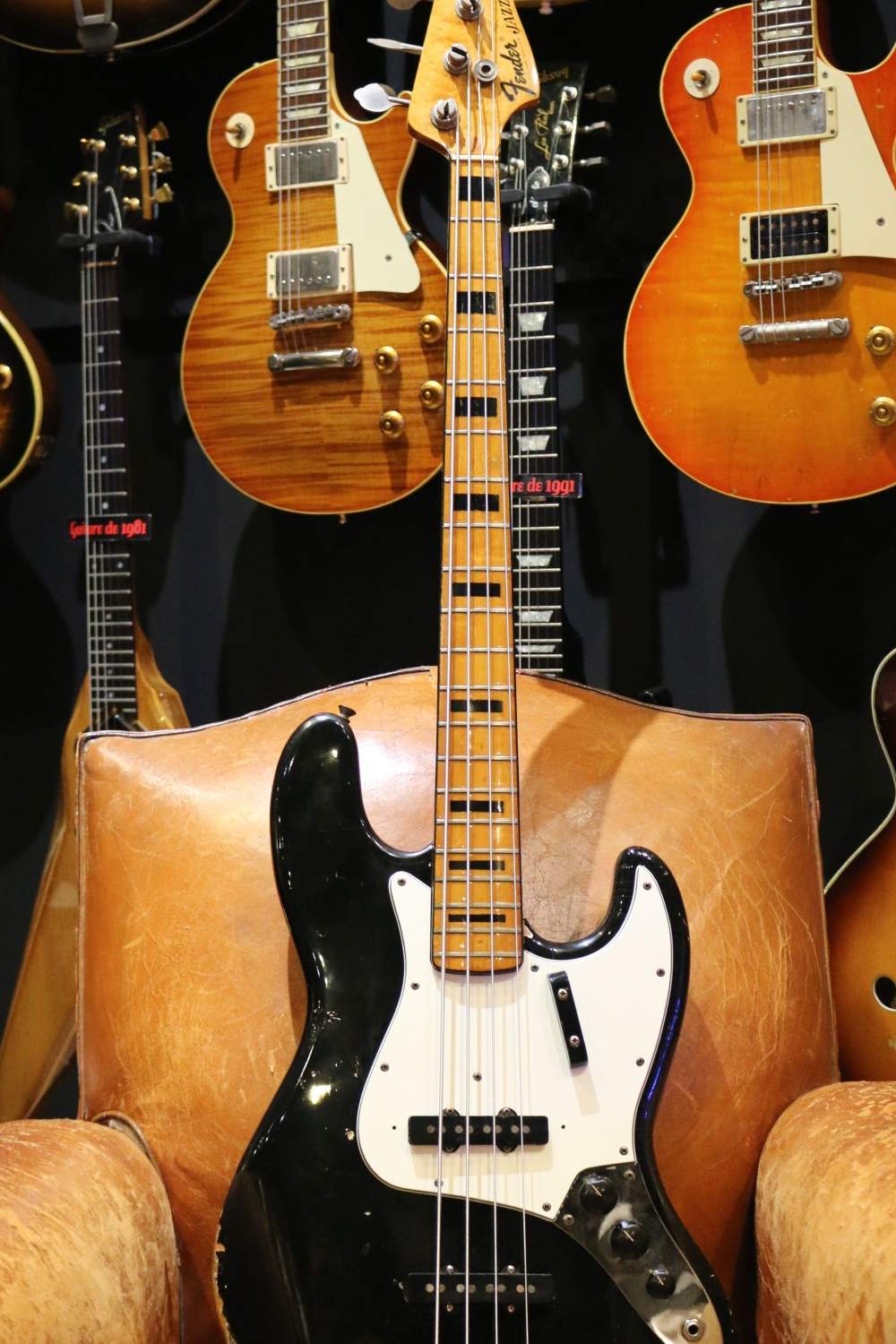 Guitare Collection présente cette très belle Fender Jazz Bass de 1972 dans une élégante finition noire. Le manche taillé dans une très belle pièce d'érable moucheté est surmonté d'une touche en érable, celle-ci étant entourée d'un binding noir et équipée de repères de touches noirs en blocs.