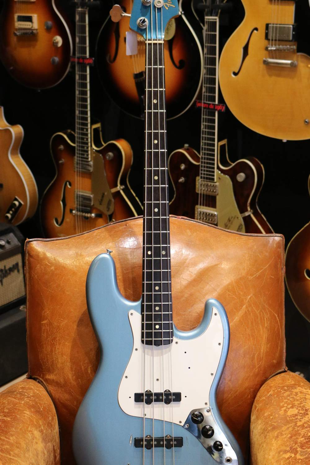 Guitare Collection vous présente cette superbe Fender Jazz Bass Lake Placid Blue avec matching headstock de 1965.