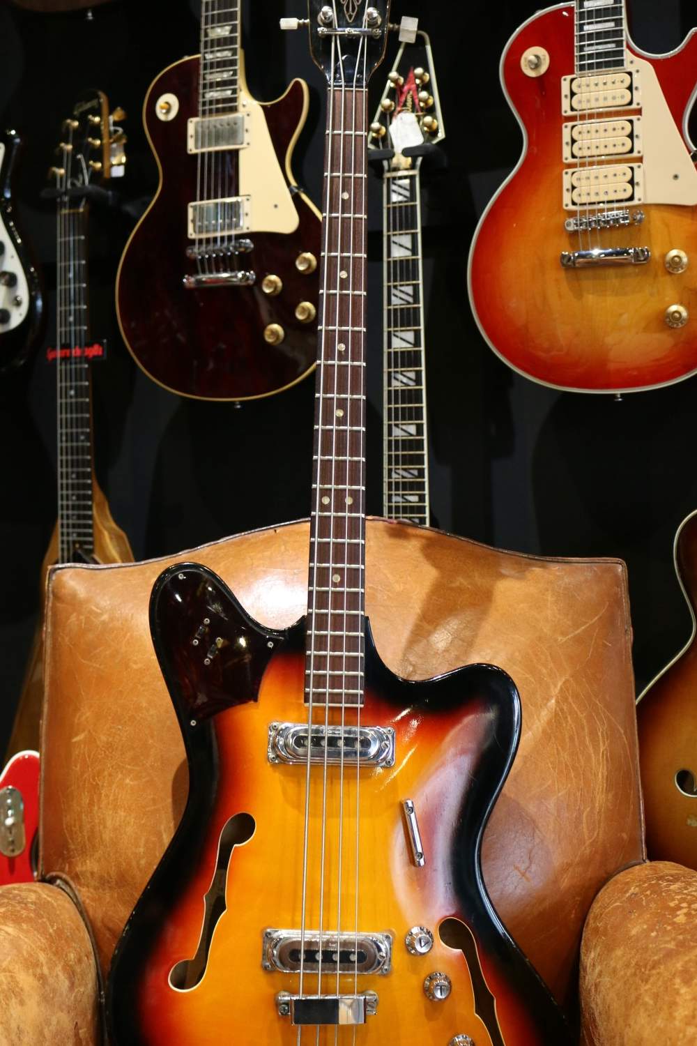 Dans un très bel état pour un instrument de près de 60 ans, cette basse joue encore bien et délivre des sonorités très intéressantes. Les micros offrent une belle plage de sons, assez variée grâce aux deux switches de sélection et aux trois potentiomètres. Le corps est composé d'une table archtop en érable et d'un dos en érable moucheté.