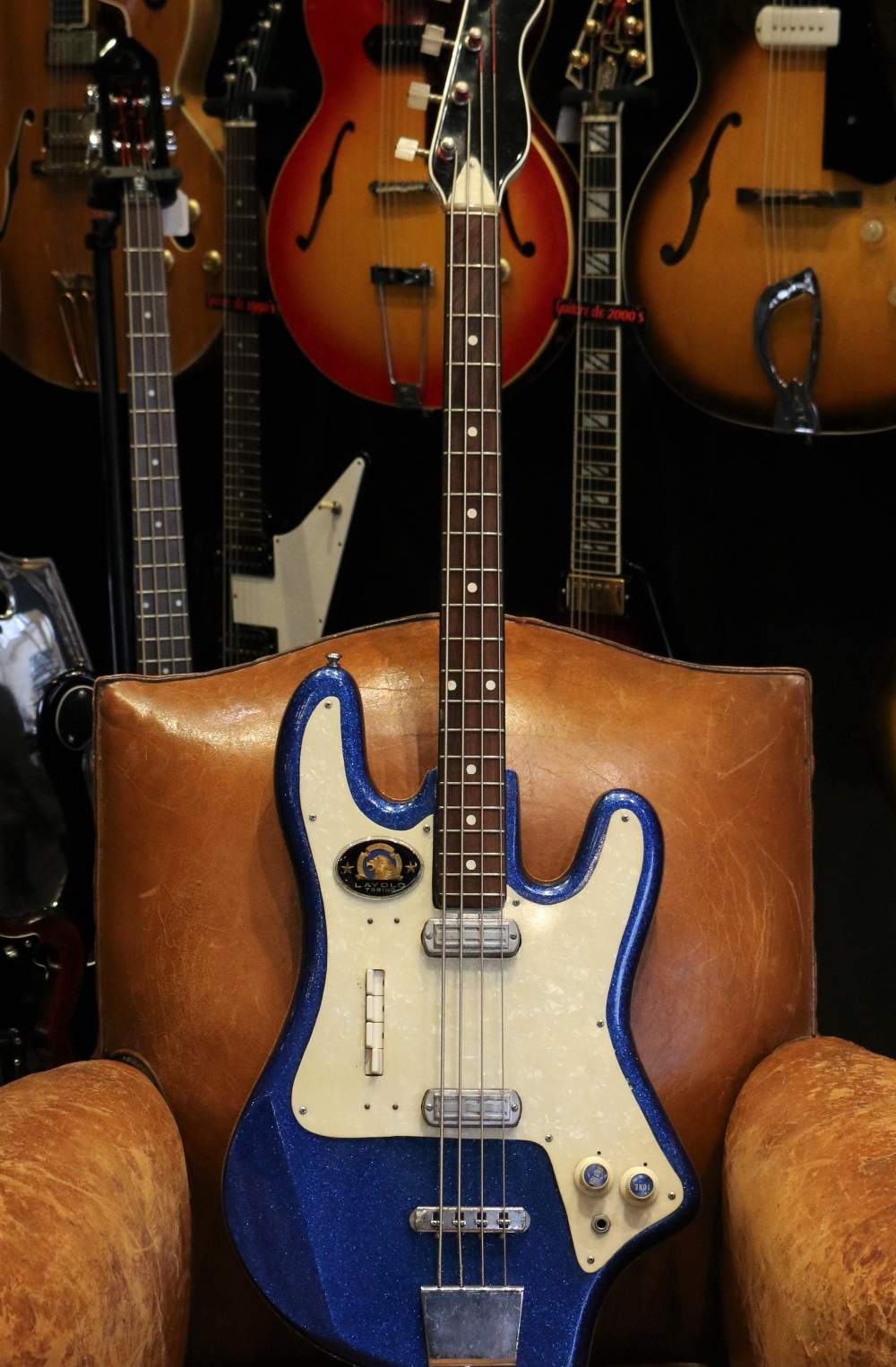 Guitare Collection vous présente cette belle basse Gemelli Layolo, enfinition Bleu Sparkle très sixties!