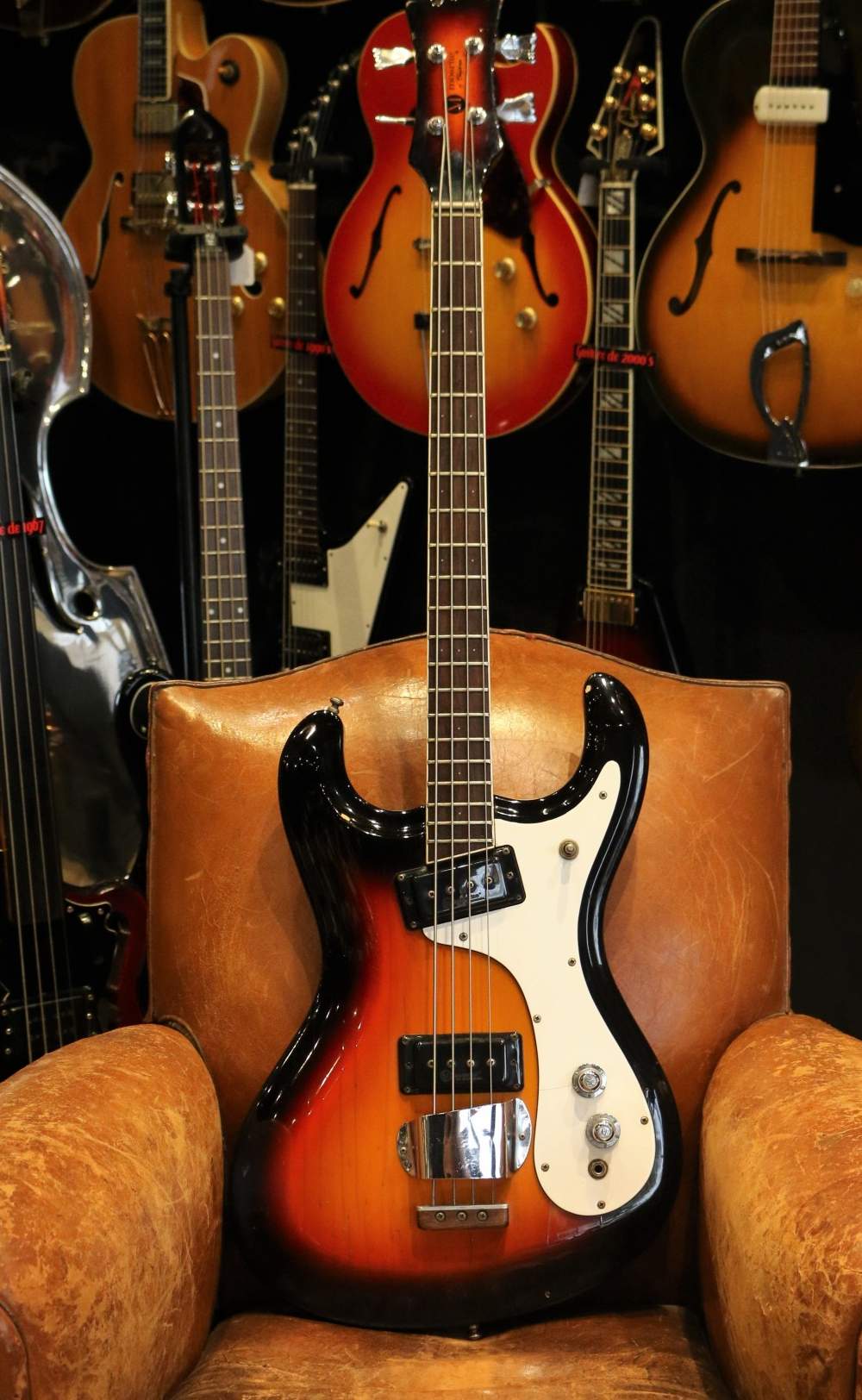 En 1967, le contrat d’endorsement avec Les Ventures n'est plus, et la Moseley uniquement, continue à être produite. Guitare Collection vous propose cette rare Mosrite Bass de 1970's en finition Sunburst. Une guitare de plusieurs dizaines d'années dans un bel état, parfaitement réglée par notre luthier résident (action basse, précision harmonique...). Une Mosrite aux sonorités très originales, avec un beau niveau de sortie, agrémenté d'un grain très boisé et représentatif du modèle.