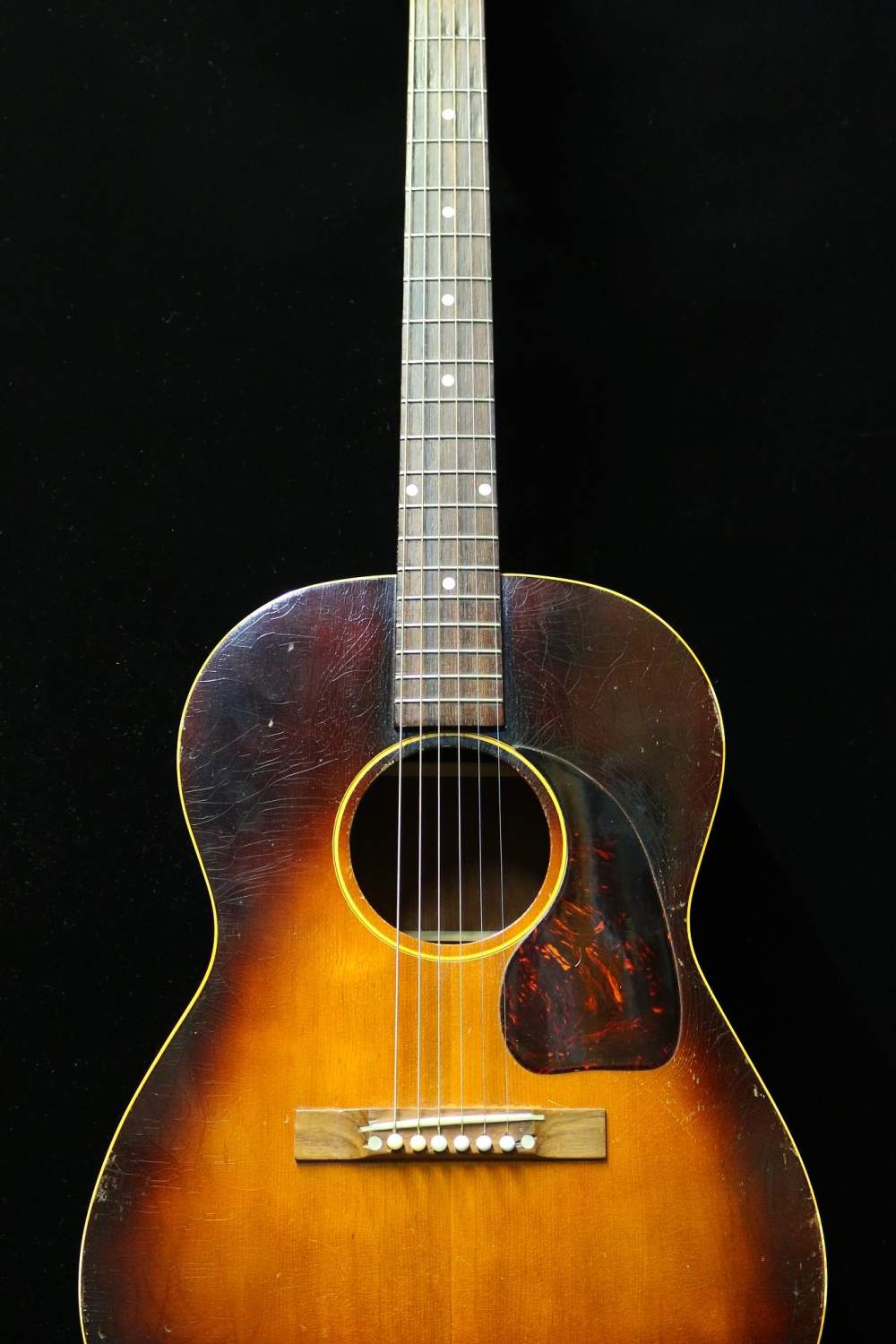 Cette ancienne Gibson (74 années) produit de somptueuses sonorités profondes et boisées, absolument parfaites pour les registres blues et Folk (Voir vidéo).