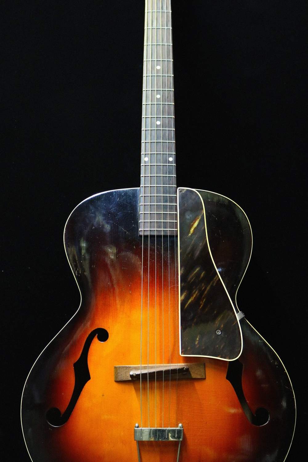 Une guitare très proche visuellement à une Gibson L-37, cette guitare acoustique Archtop avec deux ouïes est dans un superbe état, particulièrement pour une guitare de bientôt 80 années !