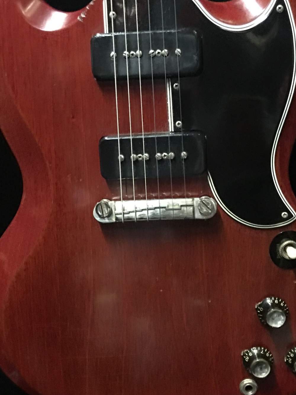 Nous avons ici à faire à une Gibson SG Special en Cherry, de 1963, livrée avec son Hard Case d'Origine.