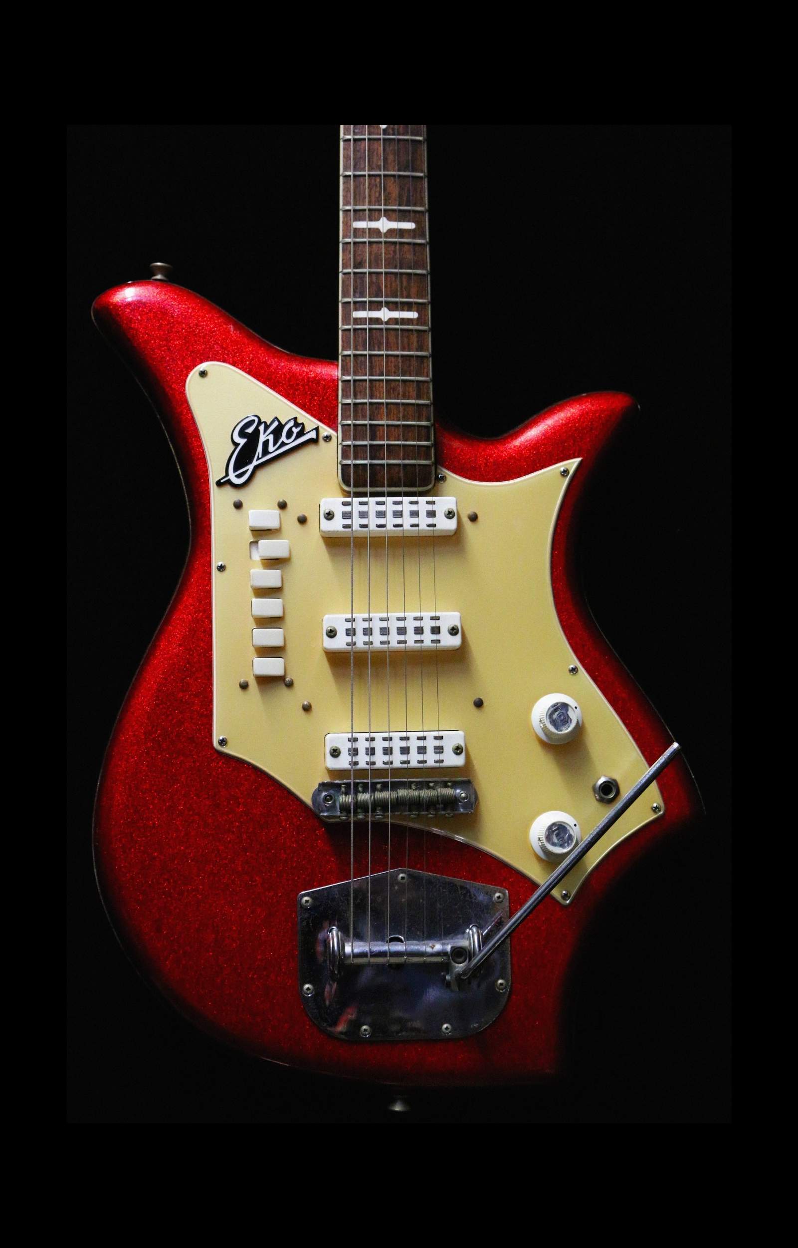 Guitare Collection vous propose cette superbe Eko 700 V3 de 1960's (1960-63) en finition Red Sparkle (paillettes rouges).