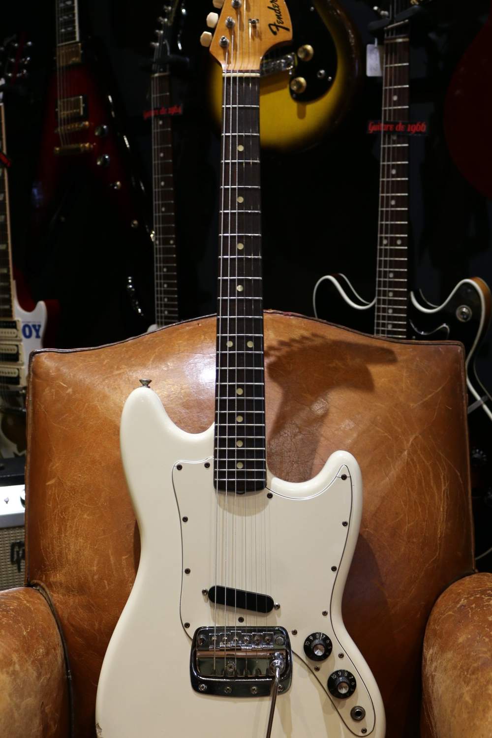 Guitare Collection présente cette très belle Fender Bronco de 1974, qui a été revernie professionnellement en Arctic White. Le vernis présente quelques marques, notamment sur la tranche et dans le dos.