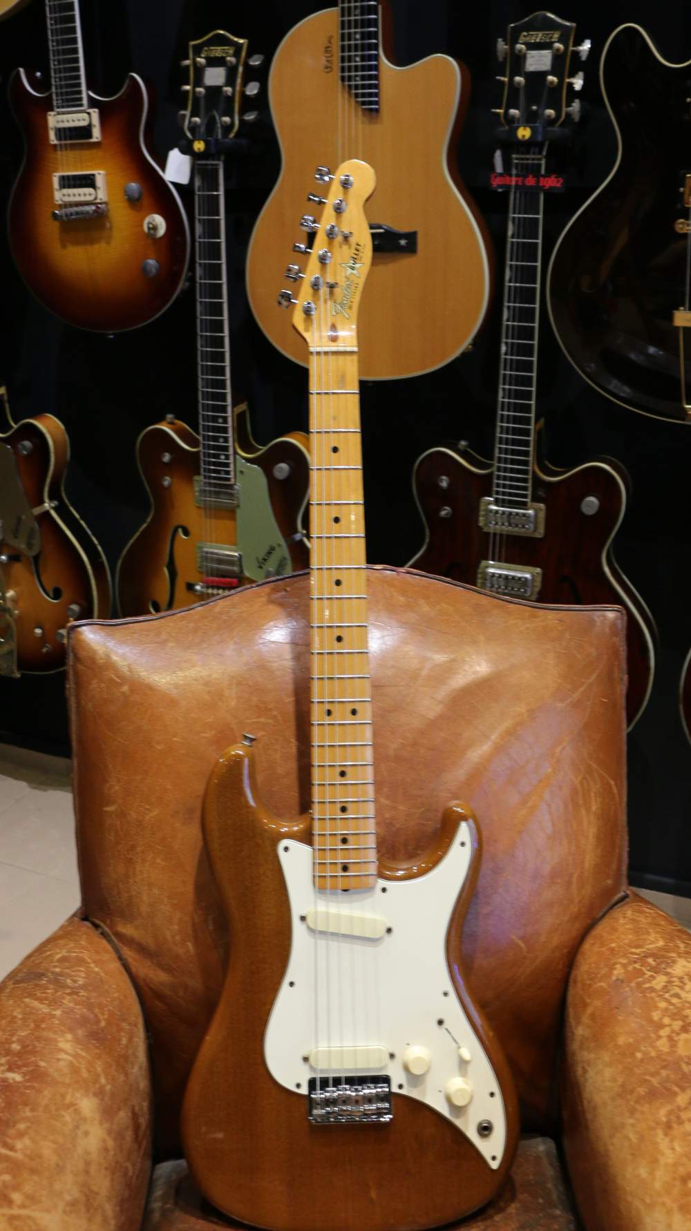 Cette rare beauté a donc un corps de Stratocaster légèrement repensé et plus petit, un manche de Telecaster et deux micros simples type Mustang.