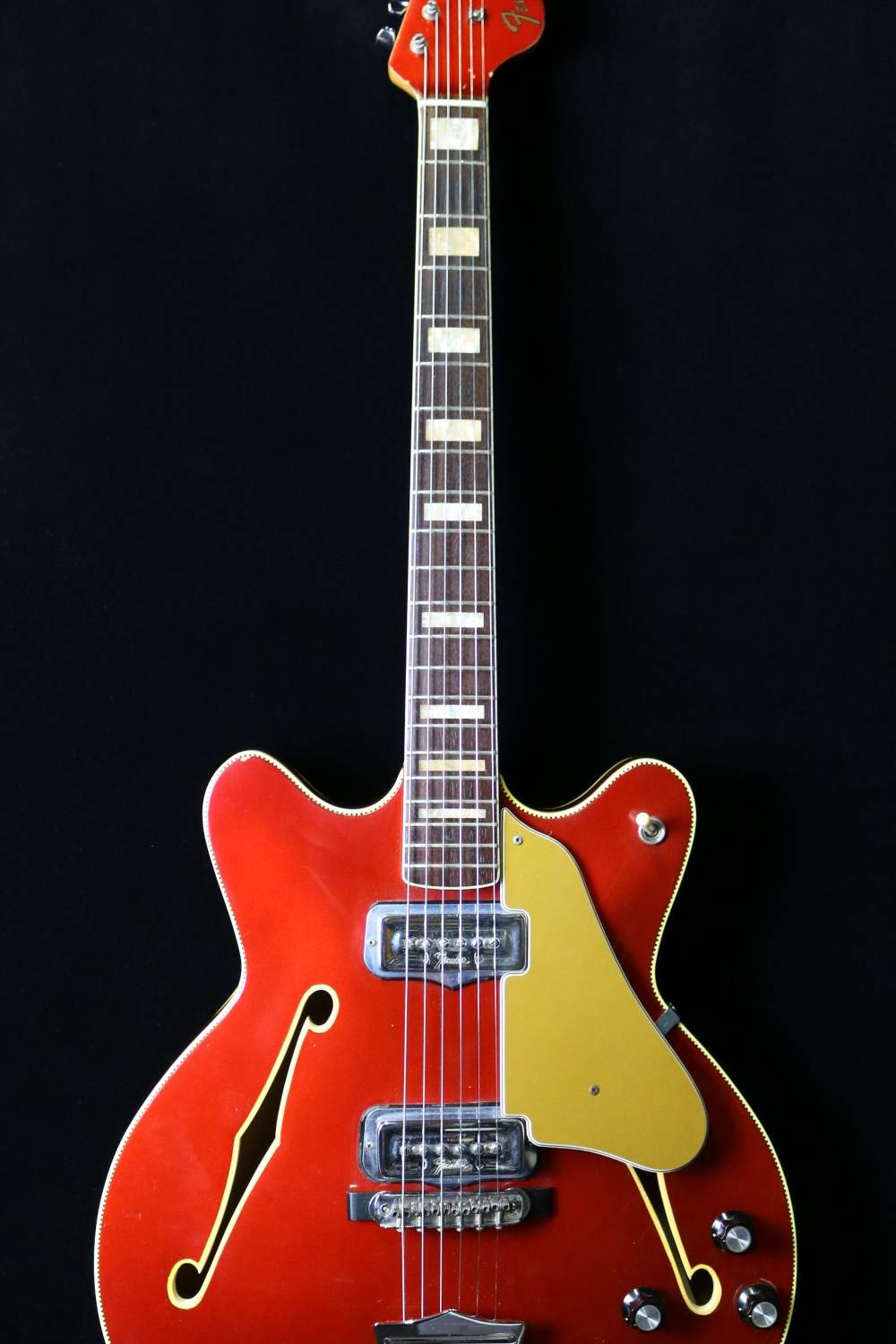 Il s'agît d'un modèle très inhabituel pour Fender, qui essaye alors de concurrencer Gibson et ses "ES".