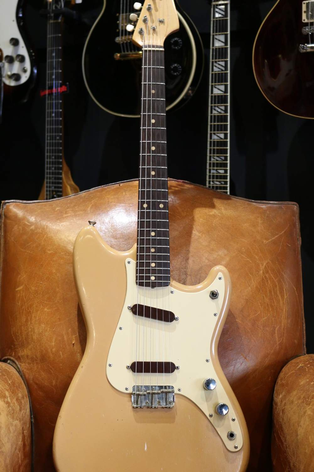 Guitare Collection vous propose cette Fender duo sonic en finition Desert Sand 1960. 100% originale avec son hardcase d’époque.