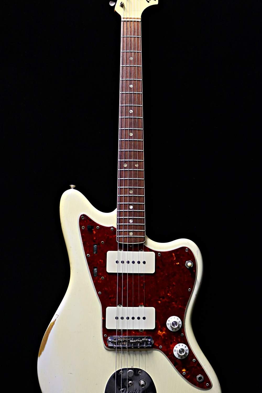 Guitare Collection vous propose cette somptueuse Fender Jazzmaster Olympic White, matching headstock (tête peinte assortie au corps) de 1966 !
