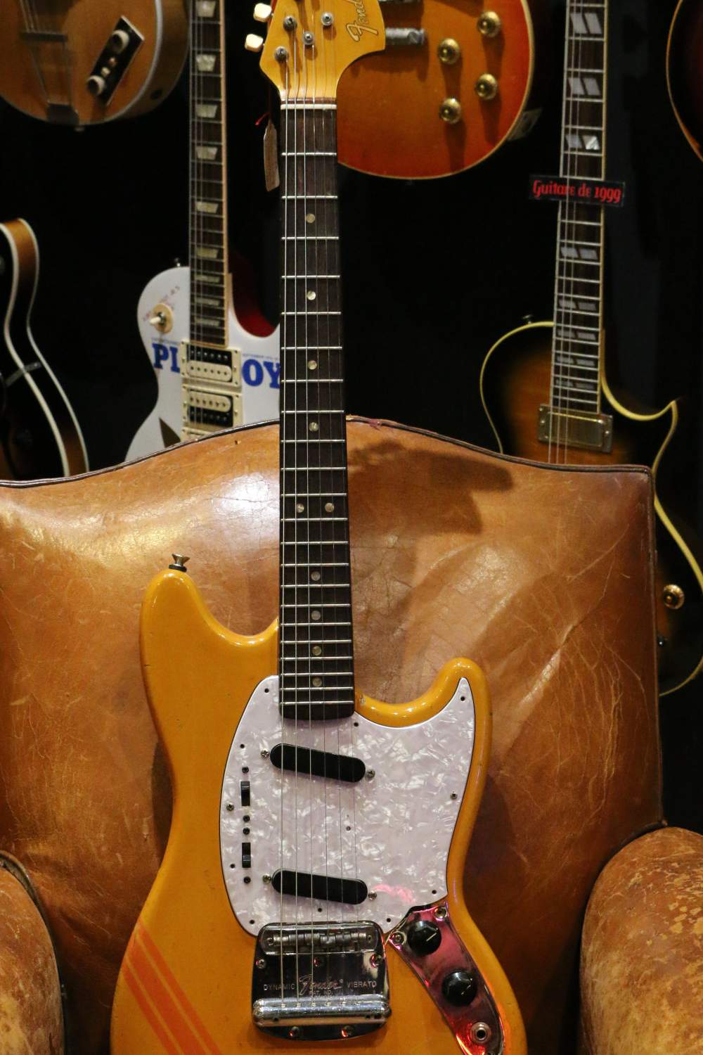 Guitare Collection vous présente cette rare et très recherchée Fender Mustang Competition Yellow de 1969 :