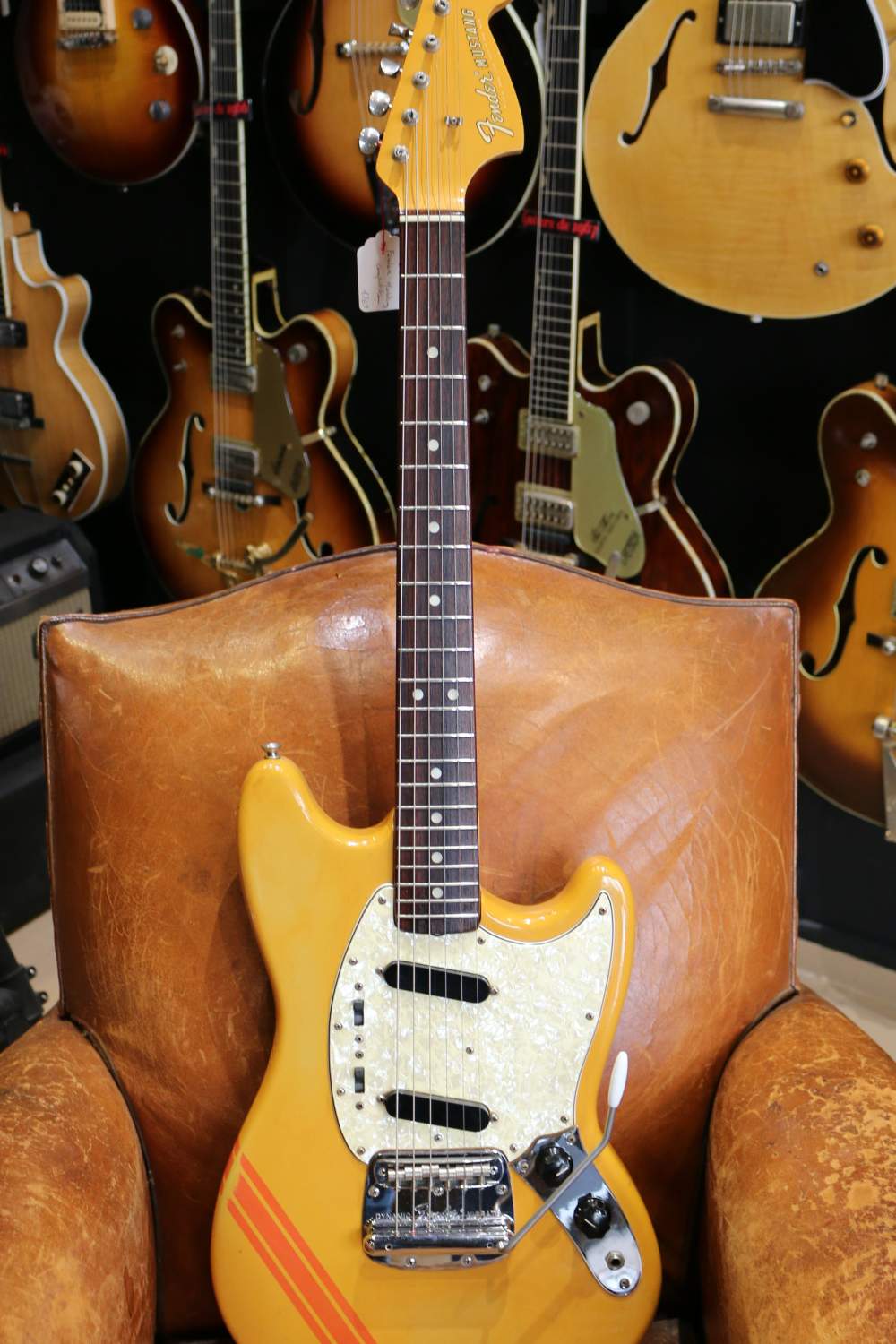 Guitare Collection vous présente cette rare et très recherchée Fender Mustang Competition Yellow de 1969 :