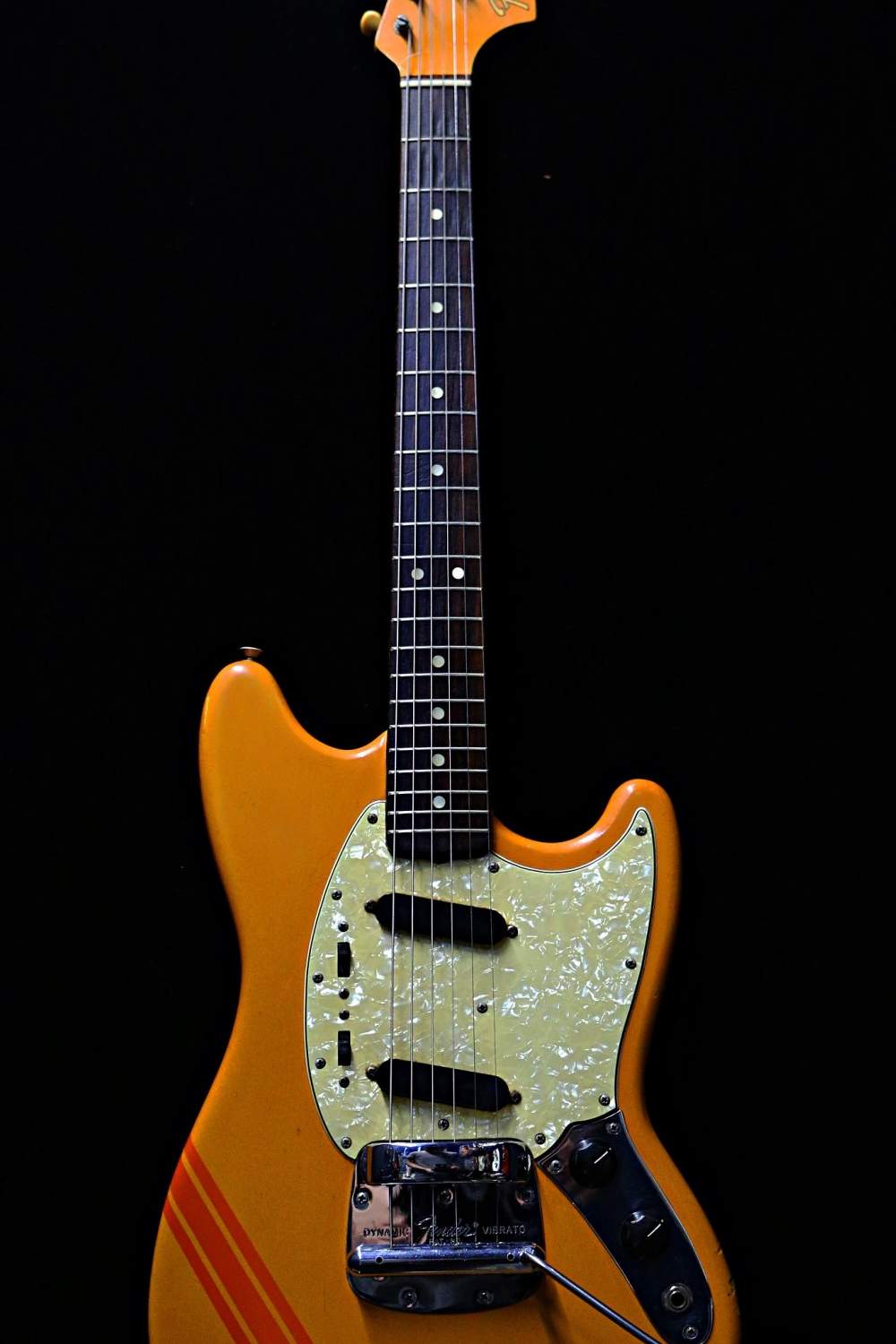 Guitare Collection vous propose cette très rare et très recherchée Fender Mustang Competition Yellow Matching Headstock (tête de anche assortie) de 1968.