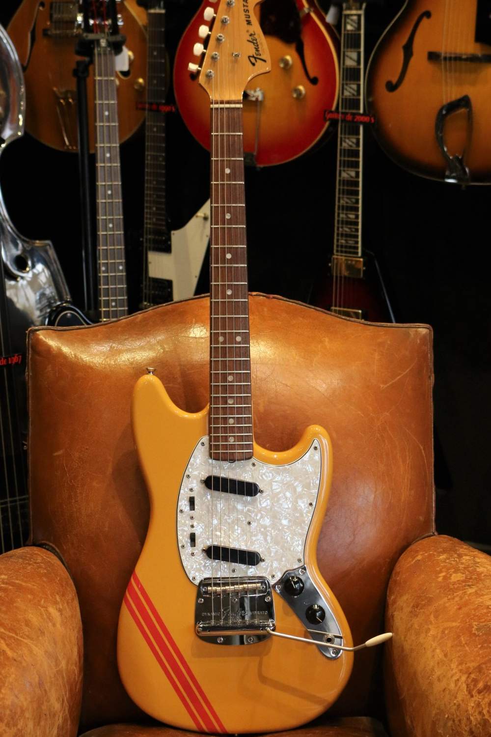 Guitare Collection vous propose cette très rare et très recherchée Fender Mustang Competition Yellow de 1972 dans un superbe état et livrée avec son Hardcase original.