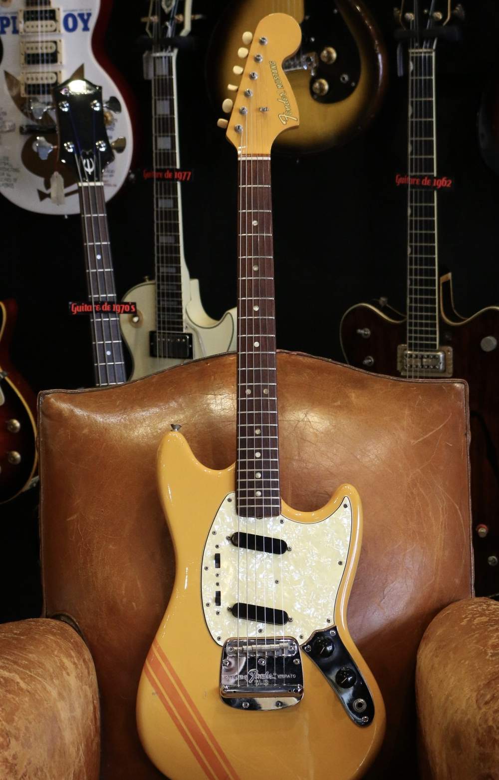 Guitare Collection vous présente cette rare et très recherchée Fender Mustang Competition Yellow de 1969.