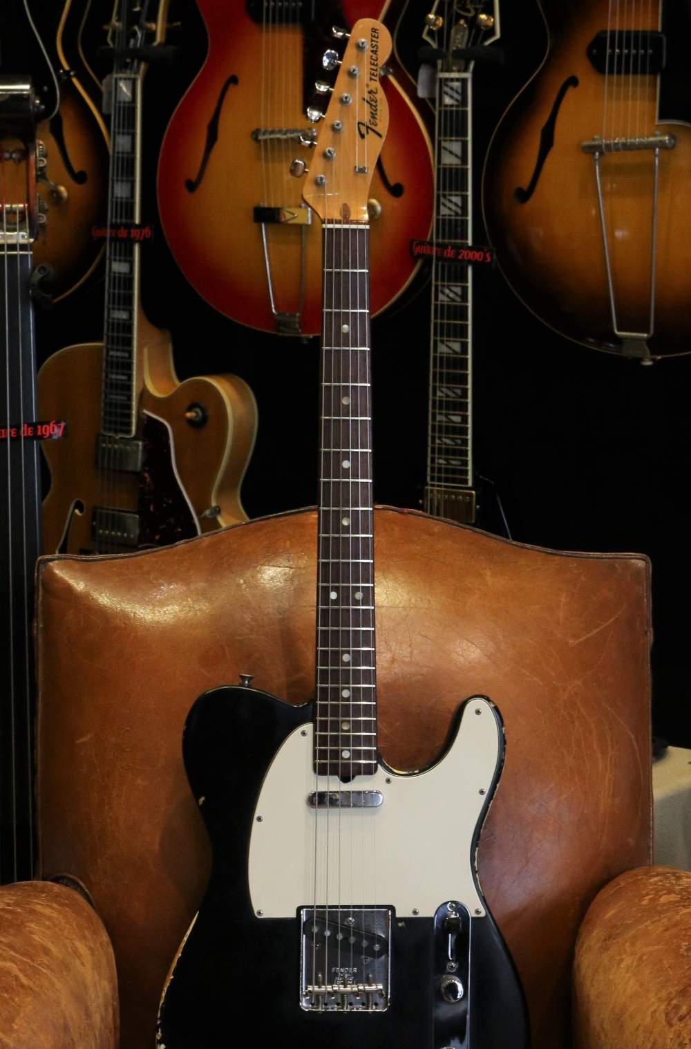 Guitare Collection vous présente cette somptueuse Fender Telecaster Black de 1971. Un look unique car repeinte en Black sur une base Blonde, ce qui lui donne avec son relicage naturel un vrai MOJO!!