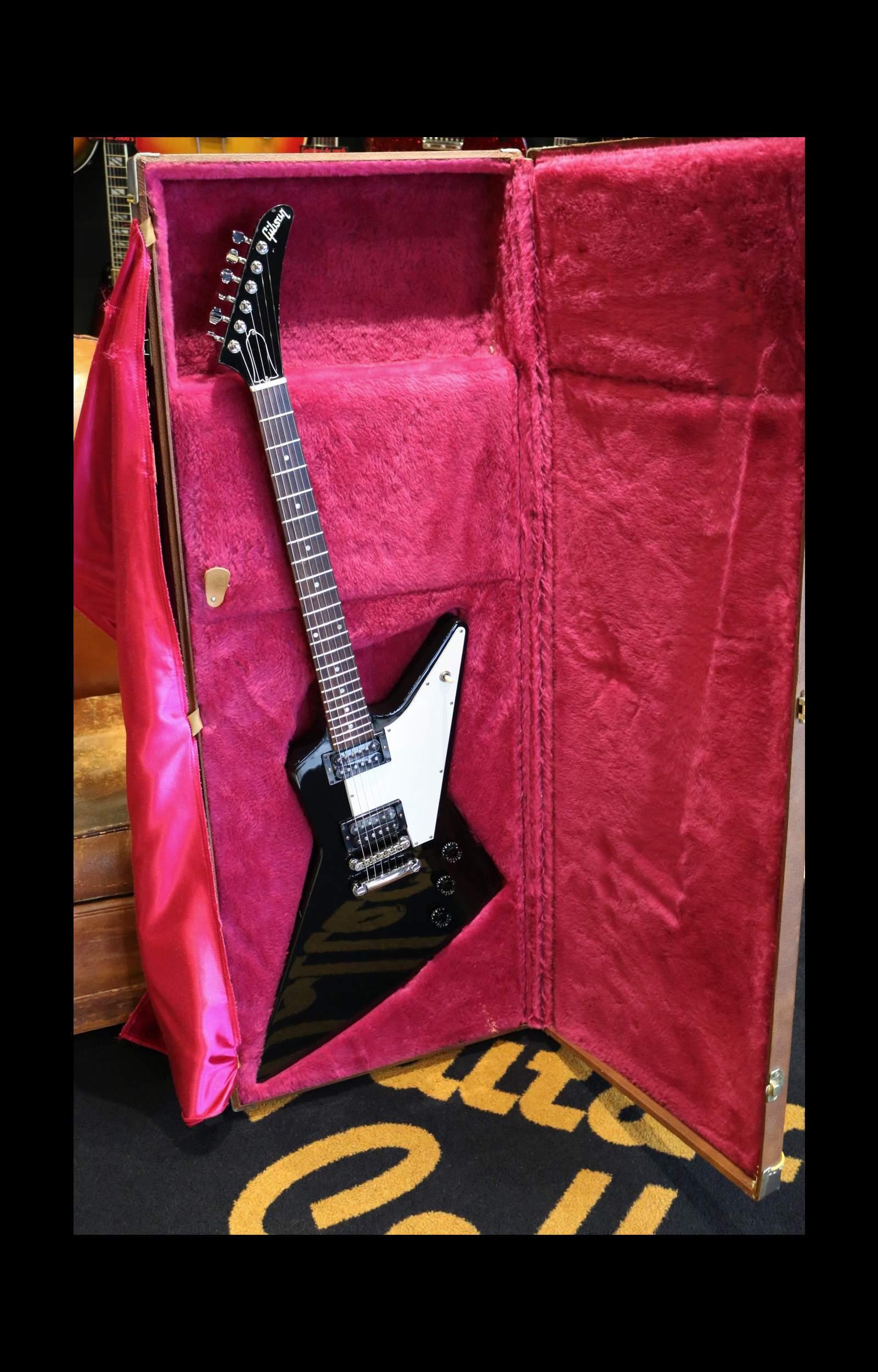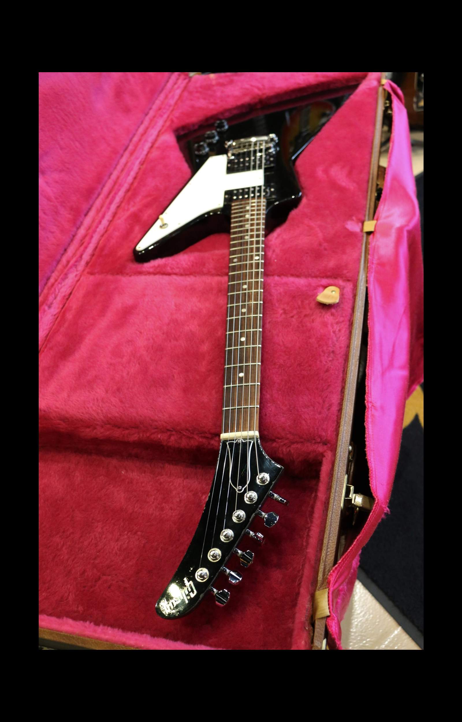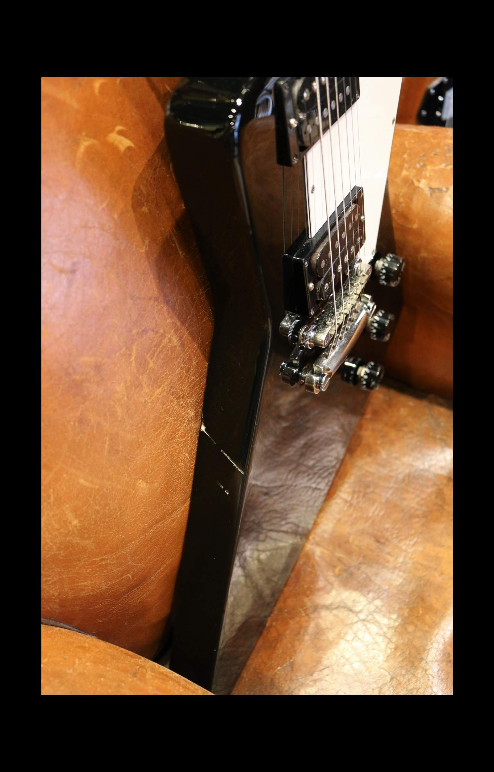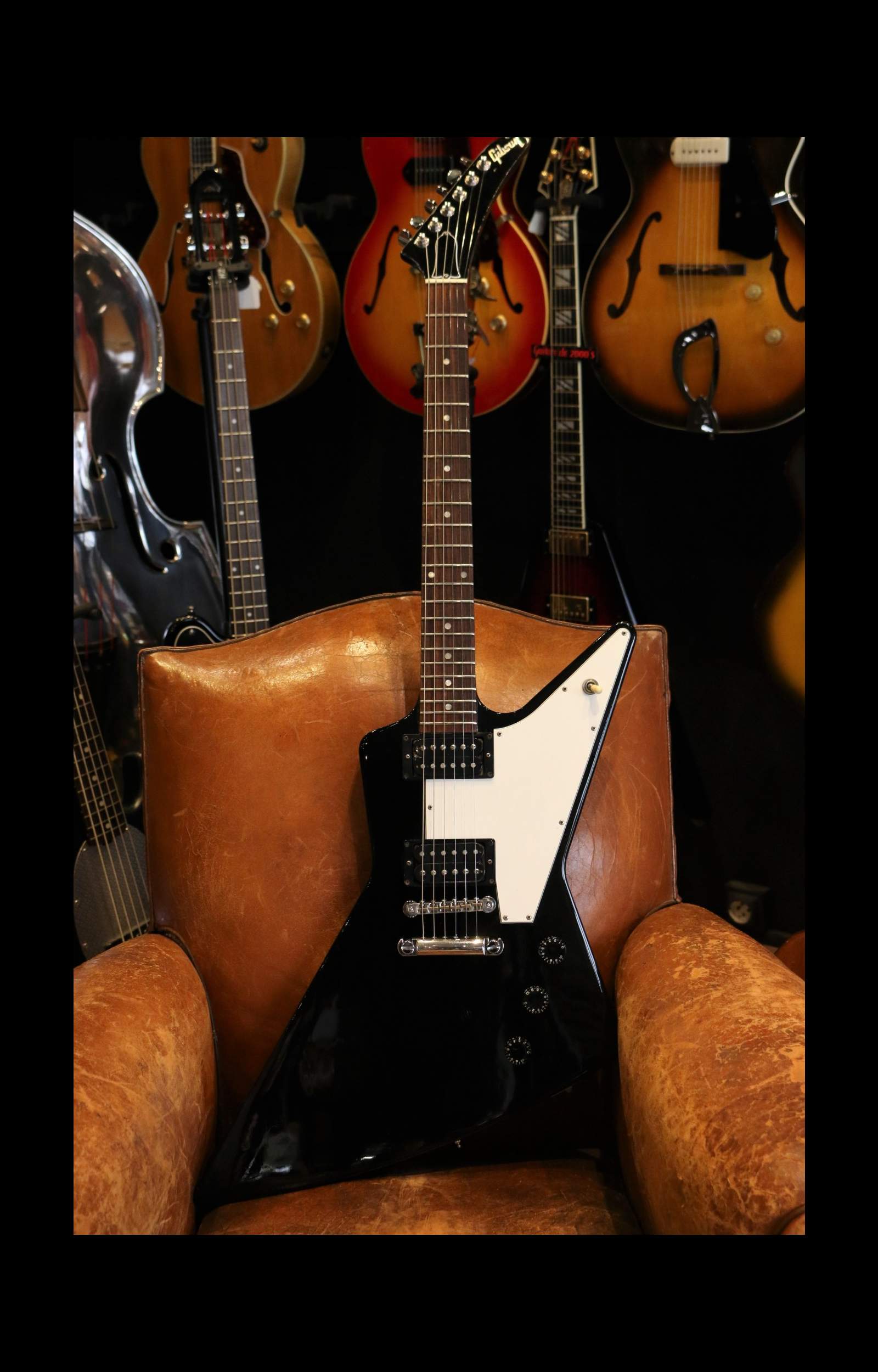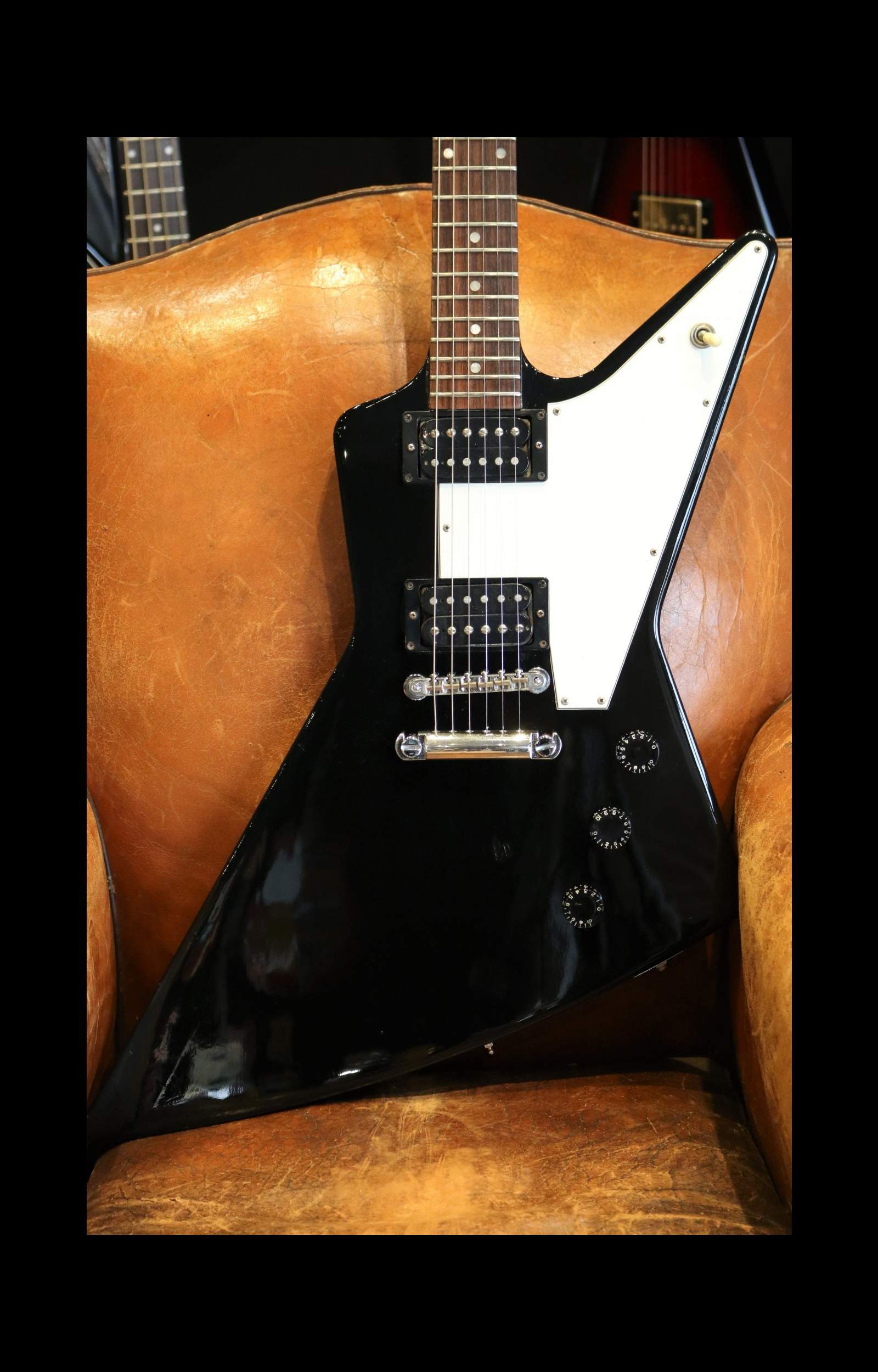 Voici donc une Gibson Explorer de 1995, reprenant toutes les caractéristiques technique d'une Explorer de 1976, avec un corps en acajou, ce qui la rend particulièrement légère, pour une guitare de ce gabarit.