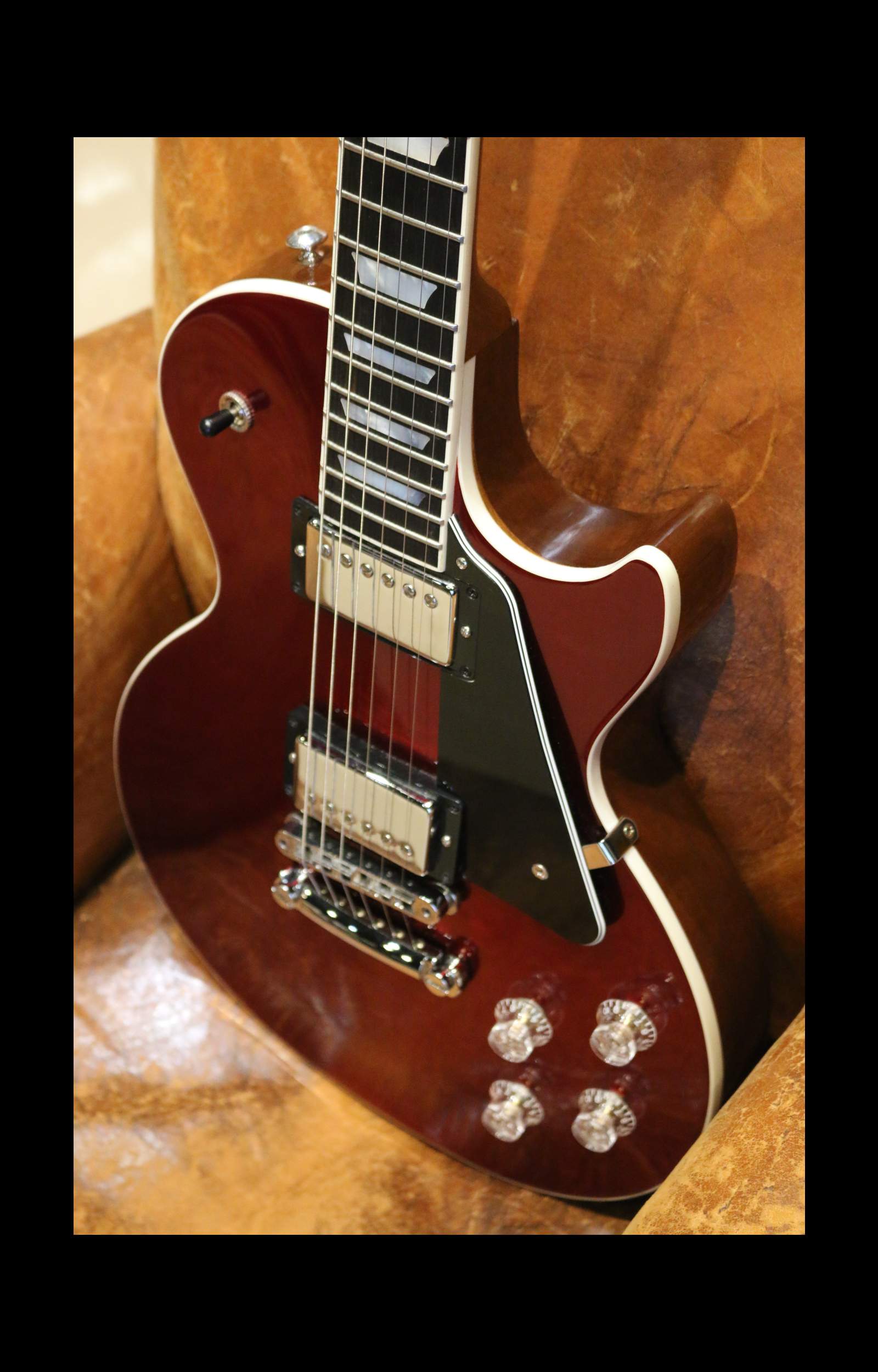 Equipped with Gibson Burstbucker Pro and Gibson Burstbucker Pro+ pickups, combined with push-pull functions (coil split, phase, bypass), it offers a wide tonal range, from classic rock to more modern sounds, while retaining the powerful and warm character typical of Les Paul guitars.