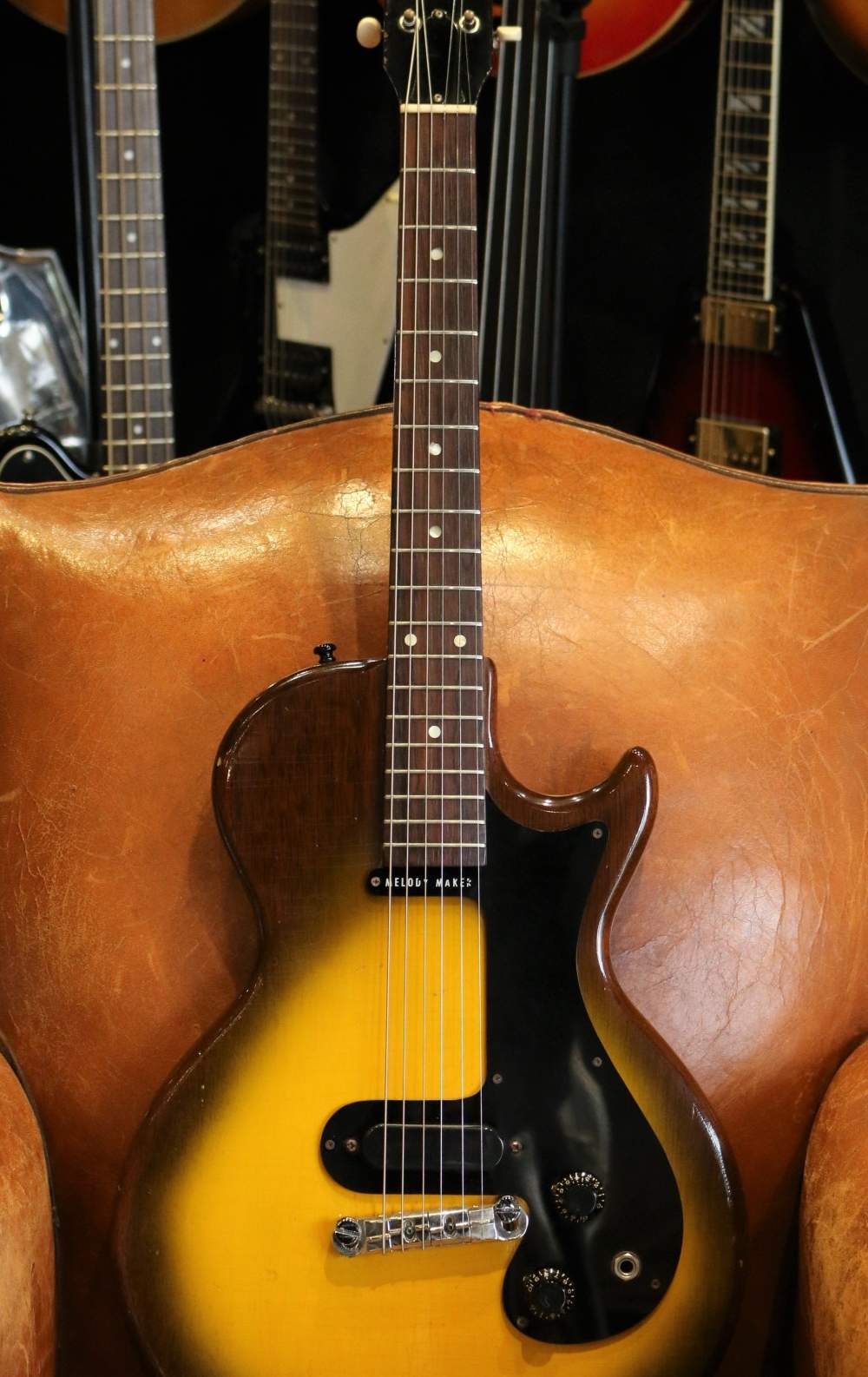 Guitare Collection vous propose cette somptueuse Gibson Melody Maker Sunburst de 1959, première année de production du modèle.