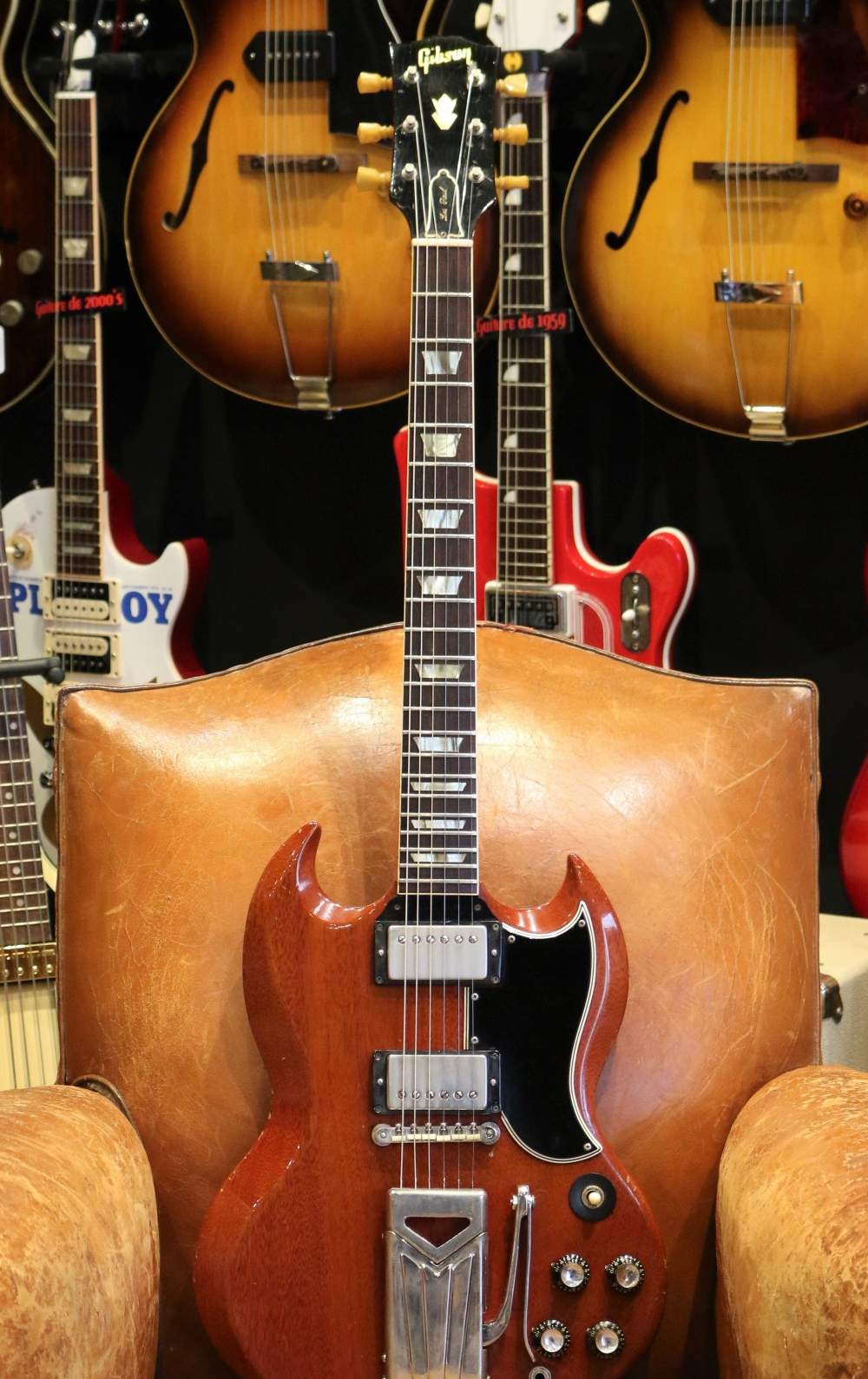 Une SG dans un superbe état, et définitivement culte puisque le nom « Les Paul » est encore présent sur la tête cette année là, et disparaitra l’année suivante.