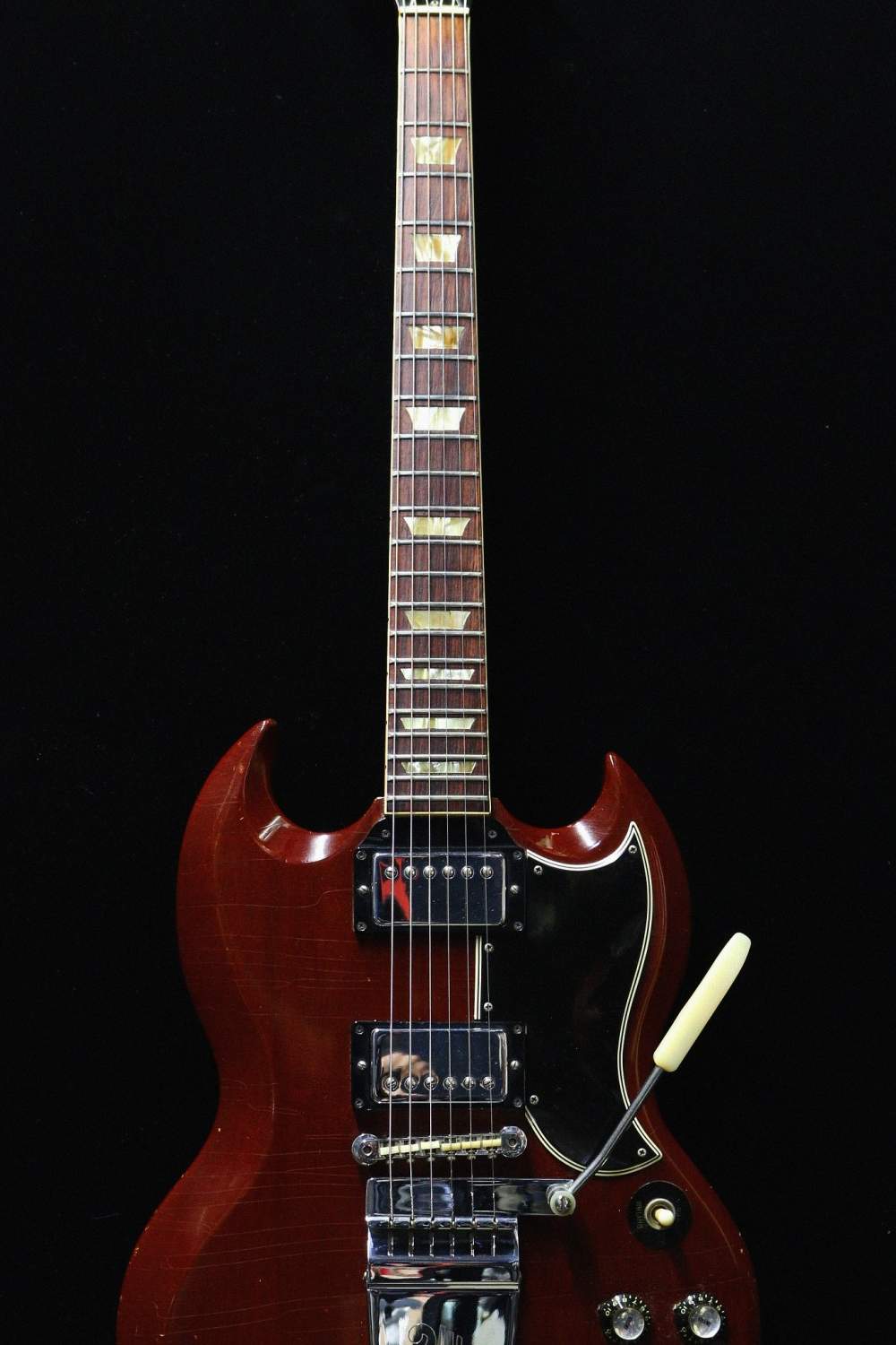 Guitare Collection vous propose cette somptueuse Gibson SG Standard Maestro de 1966 en finition Wine Red.