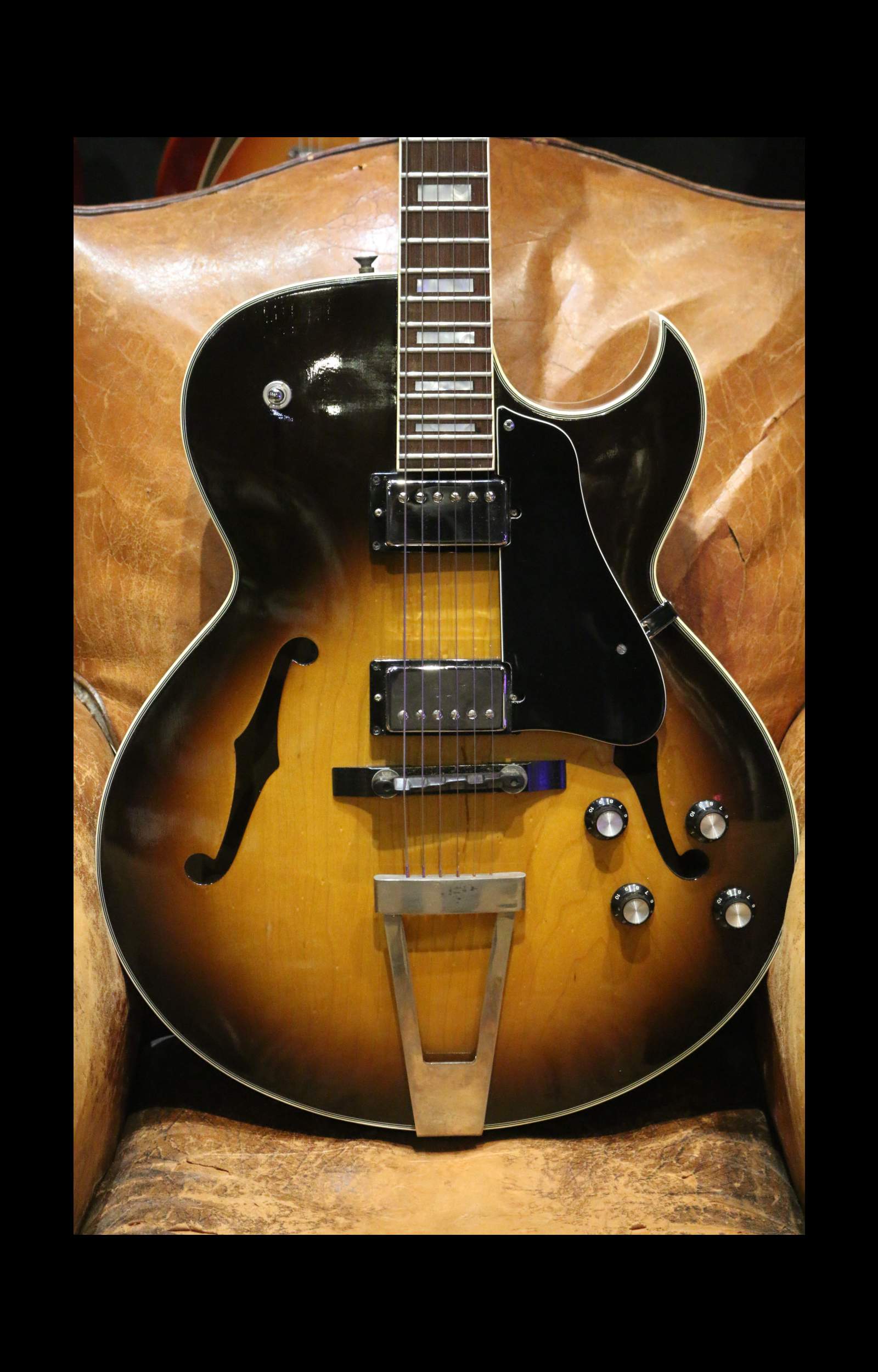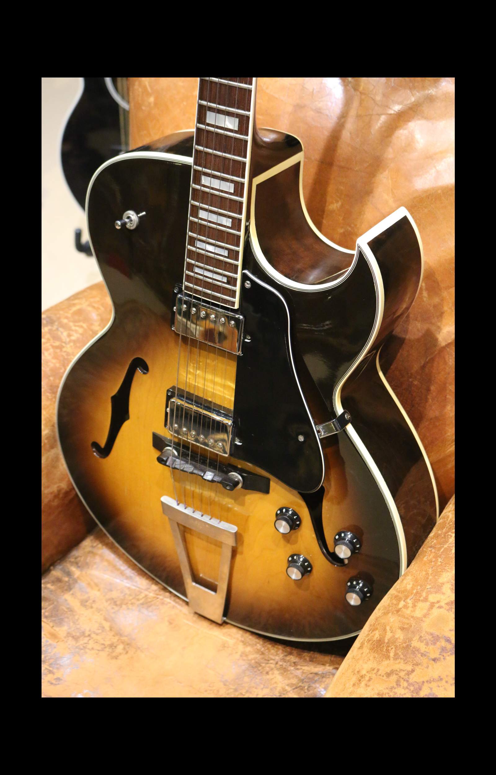 The Jacobacci Sacha Distel model is an iconic electric archtop jazz guitar, handcrafted in Paris starting in 1966 in collaboration with musician Sacha Distel !