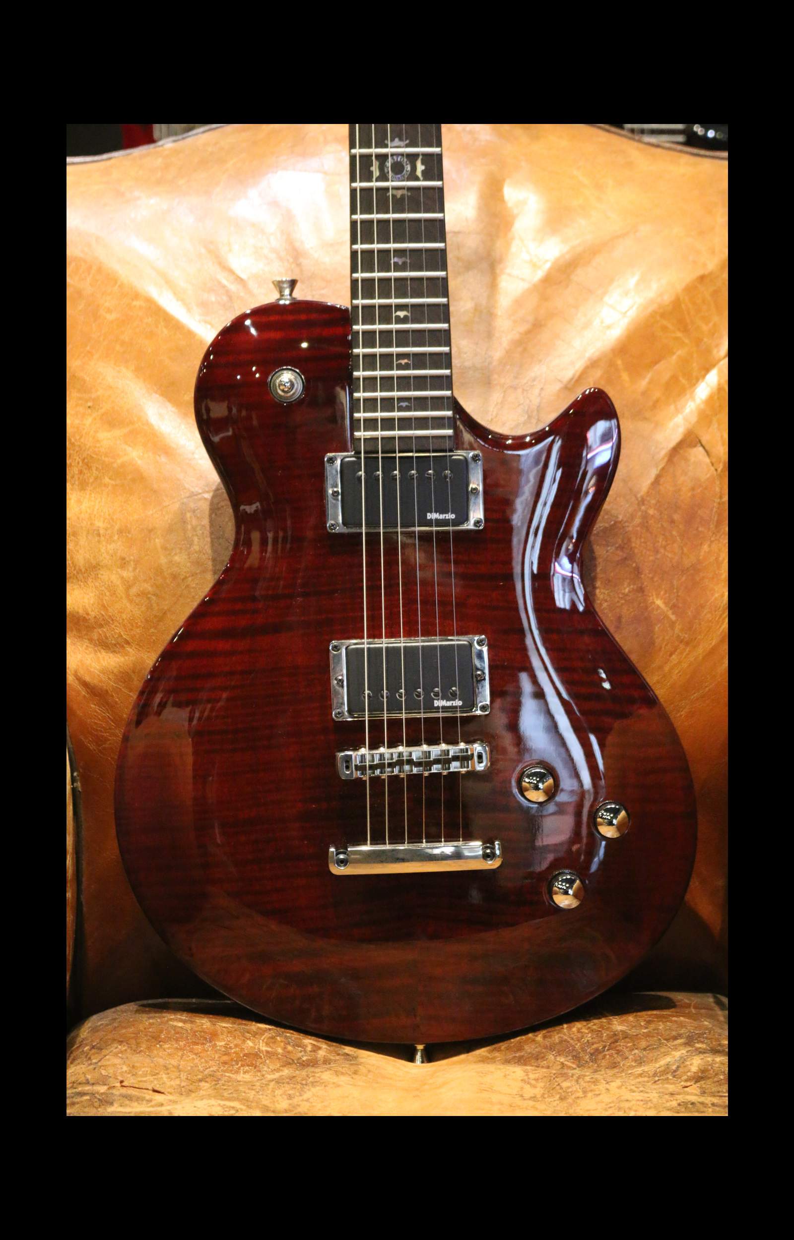 Equipped with two DiMarzio humbuckers (Tone Zone and Virtual Hot PAF), it offers a wide tonal palette, ranging from warm and powerful sounds to clearer tones thanks to coil-splitting !