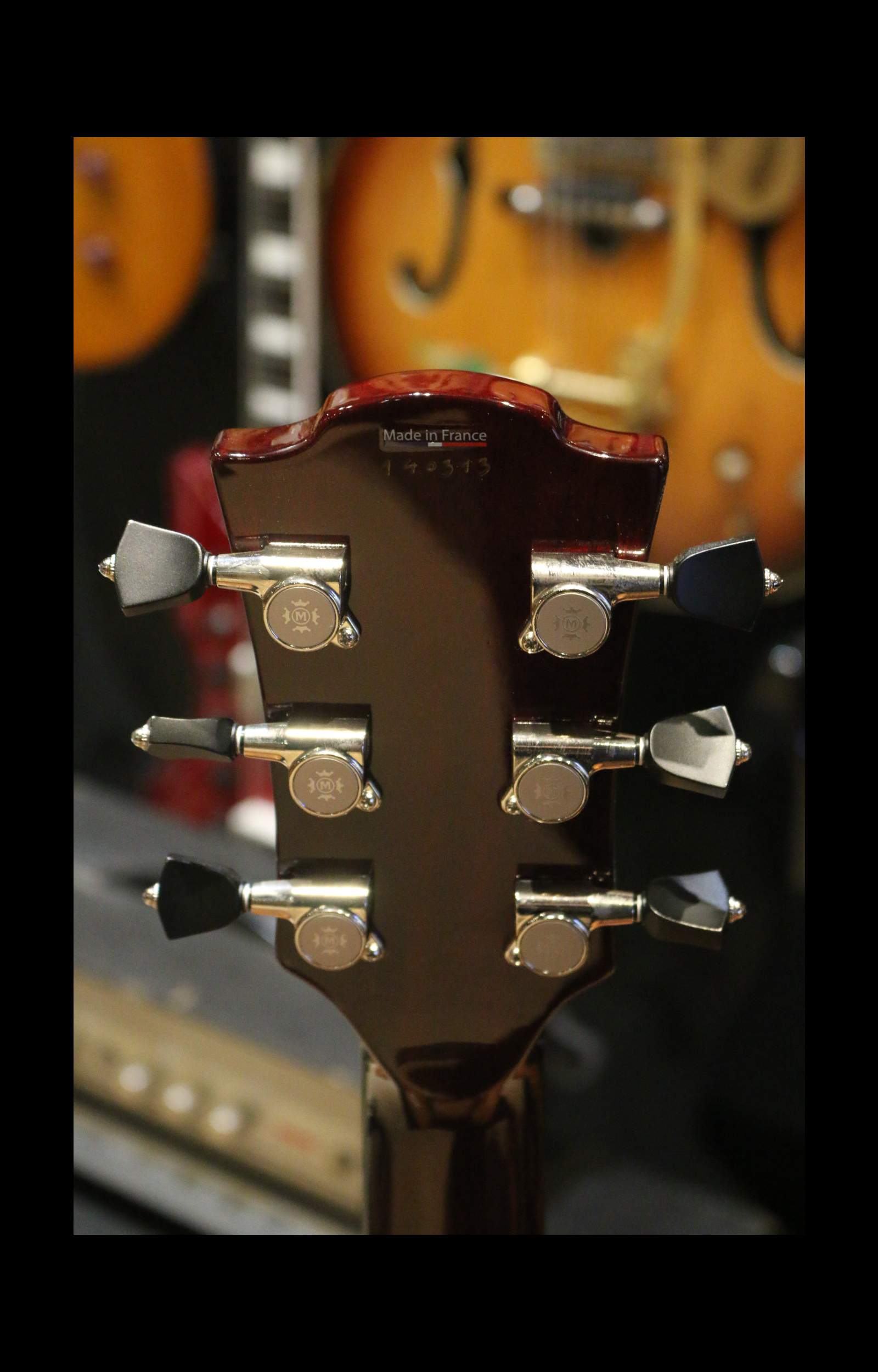 Inspired by single-cut models such as the Les Paul, it stands out for its meticulous craftsmanship and premium materials : an African mahogany body with a figured maple top, a set-in reinforced mahogany neck, and an ebony fingerboard.