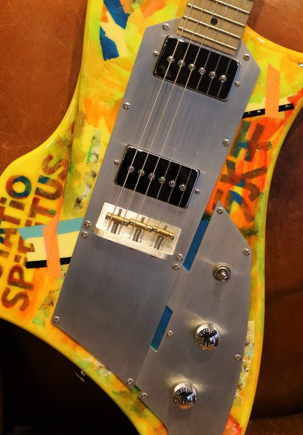 La plus grande particularité des guitares Pistol est sans doute l’alliance de deux matières, le bois et l’aluminium.