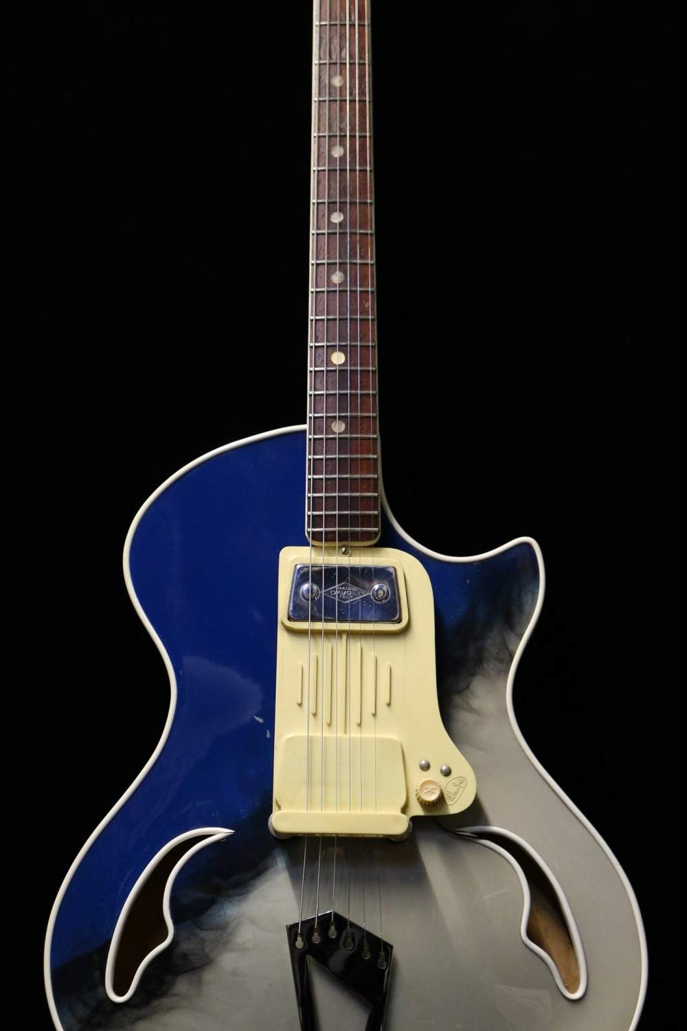 Guitare Collection vous propose cette superbe Wandrè Blue Jean de 1962 dans la finition la plus rare du modèle : Candle Smoke (fumée de bougie).